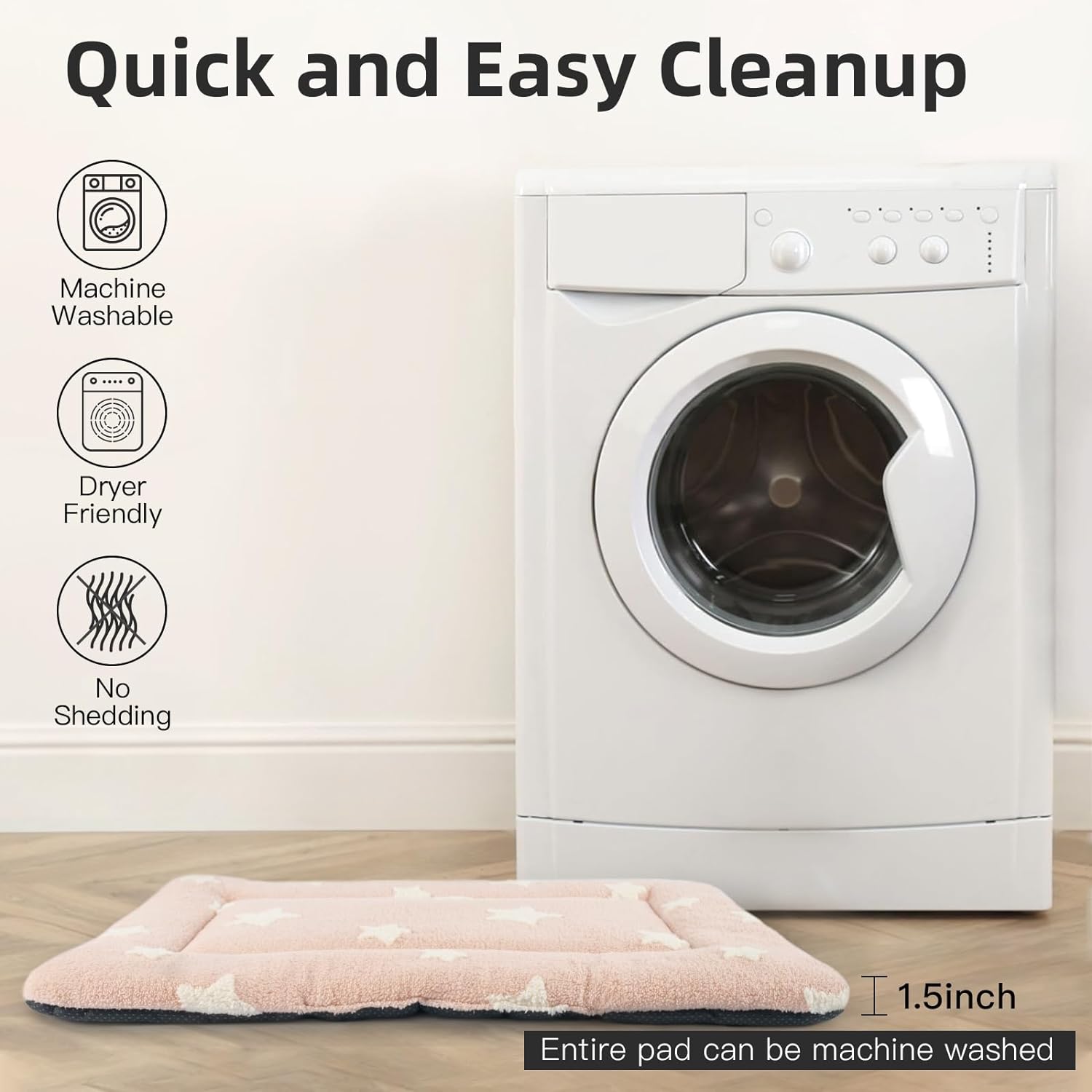 Mora Pets Dog Crate Pad Dog Kennel Bed Mat for Large Dogs Washable Cute Star Pet Bed for 36 inch Cage Ultra Soft Flat Puppy Cat Cushion for Cozy Sleeping Anti-Slip Pink 36 x 23