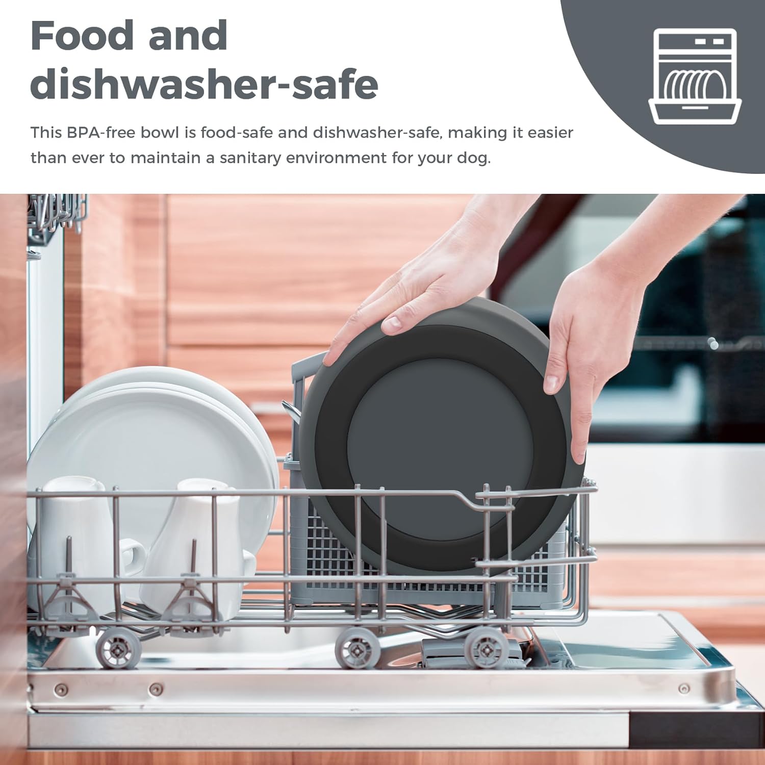 - Non-Slip: The bottom of our dog bowl is made of silicone and will not scratch the floor. Are you afraid that in a quiet resting environment, your pet will make a sound of rubbing against wood and tiles because it eats happily? Our dog bowl basically prevents this situation from happening