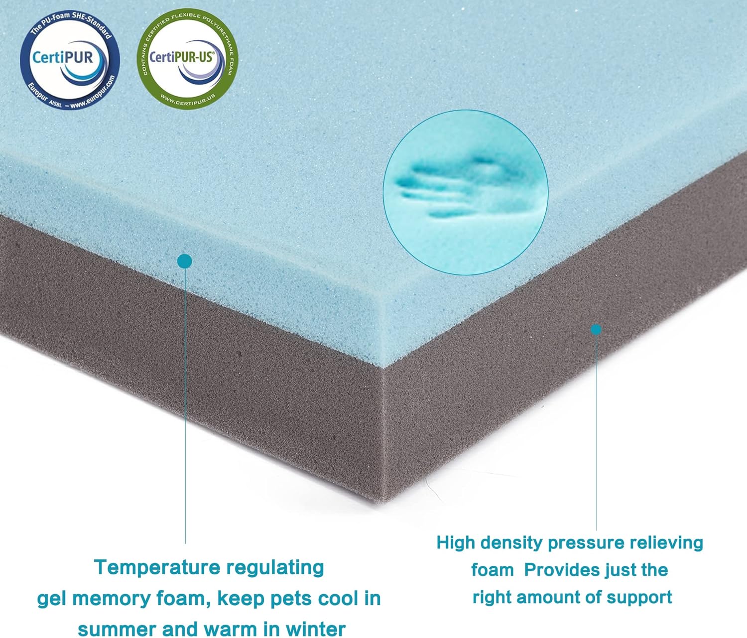 - CertiPUR-US Certified Foam: Gohoo Pet' dog bed is designed with cooling gel memory and high-density bamboo charcoal support foam, has a constant temperature effect, which can keep your dog warm in winter and cool in summer. High-density foam supports the dog's body and reduces joint pressure.