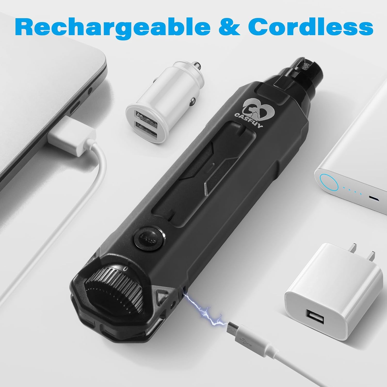 - Newest enhanced power & 6 precisely controlled speeds: 7000RPM to 12000 RPM power makes Casfuy dog nail grinder one of the most powerful grinders on the market. It is also the safe power to grind at home. Multiple speeds and ample power meet small, medium, and large pets' nail trimming needs.