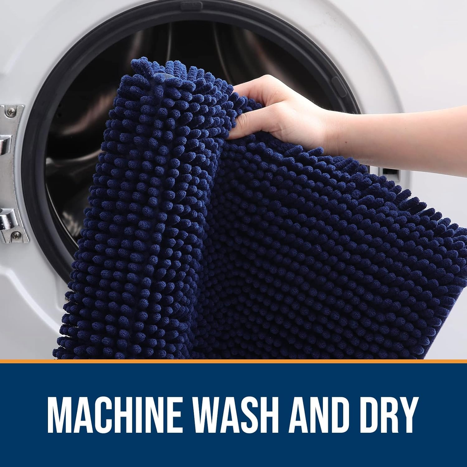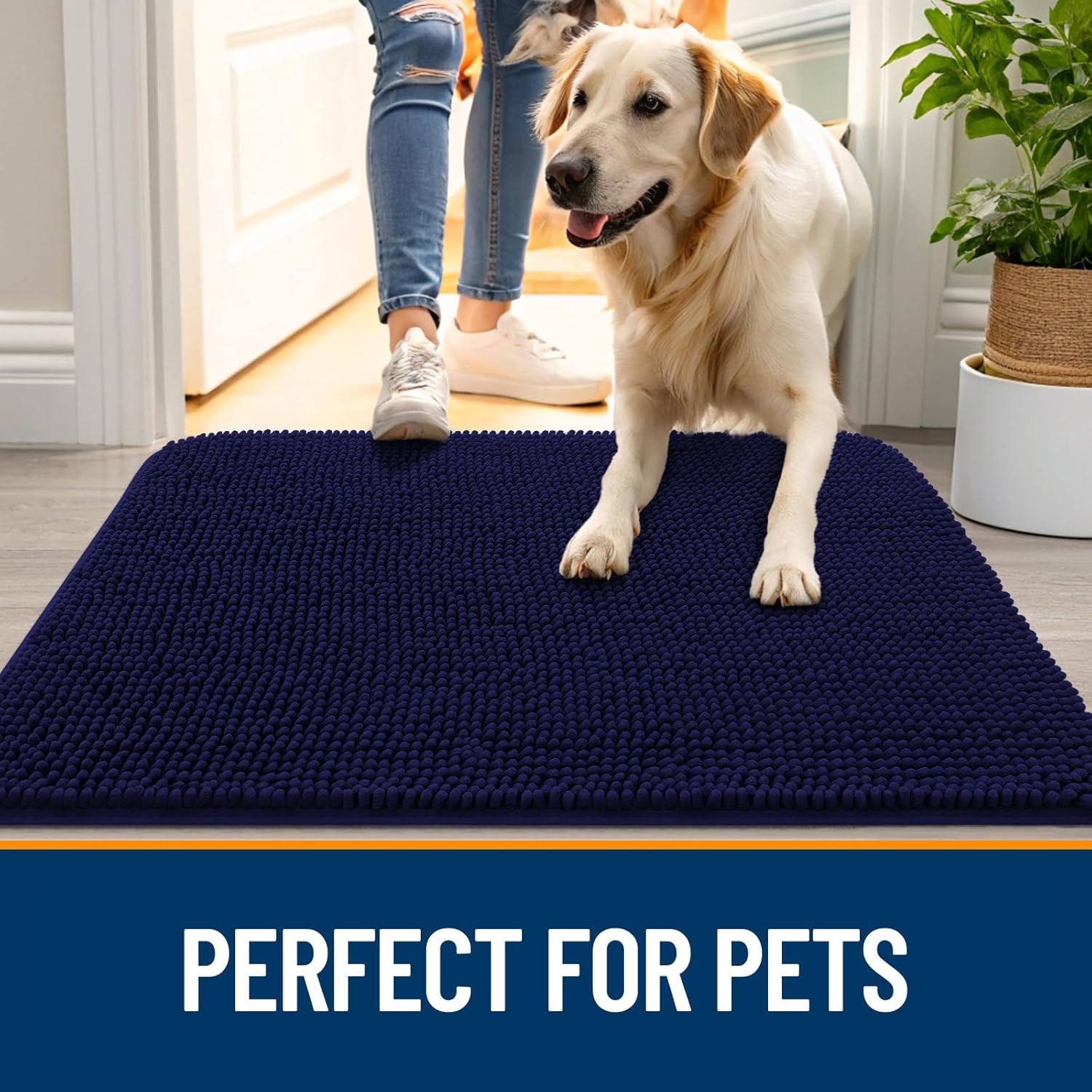 OLANLY Dog Door Mat for Muddy Paws 59x35, Absorbs Moisture and Dirt, Absorbent Non-Slip Washable Doormat, Quick Dry Chenille Mud Mat for Dogs, Entry Indoor Entryway Carpet for Inside Floor, Navy Blue