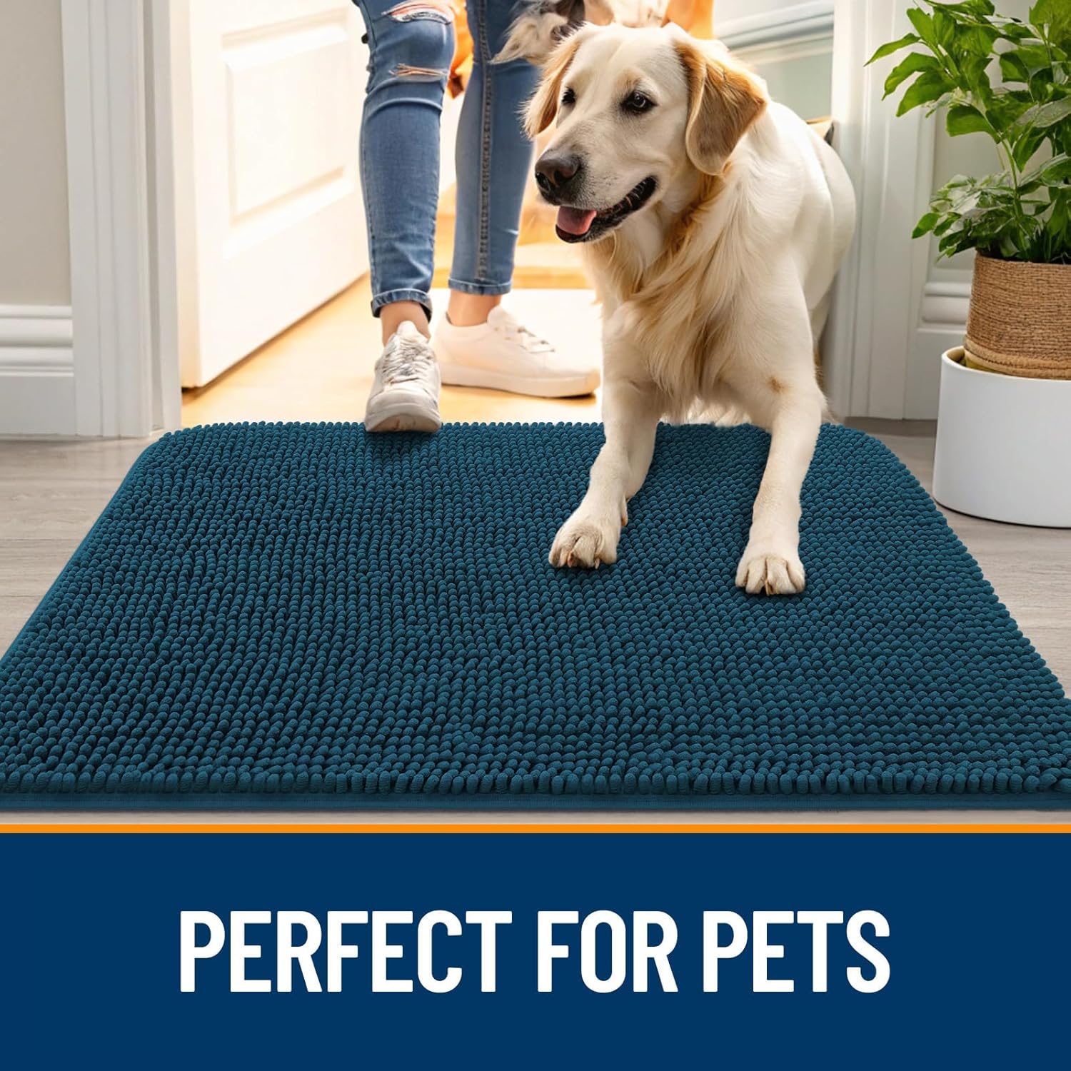 OLANLY Dog Door Mat for Muddy Paws 47x32, Absorbs Moisture and Dirt, Absorbent Non-Slip Washable Doormat, Quick Dry Chenille Mud Mat, Entry Indoor Entryway Carpet for Inside Floor, Atlantic Blue
