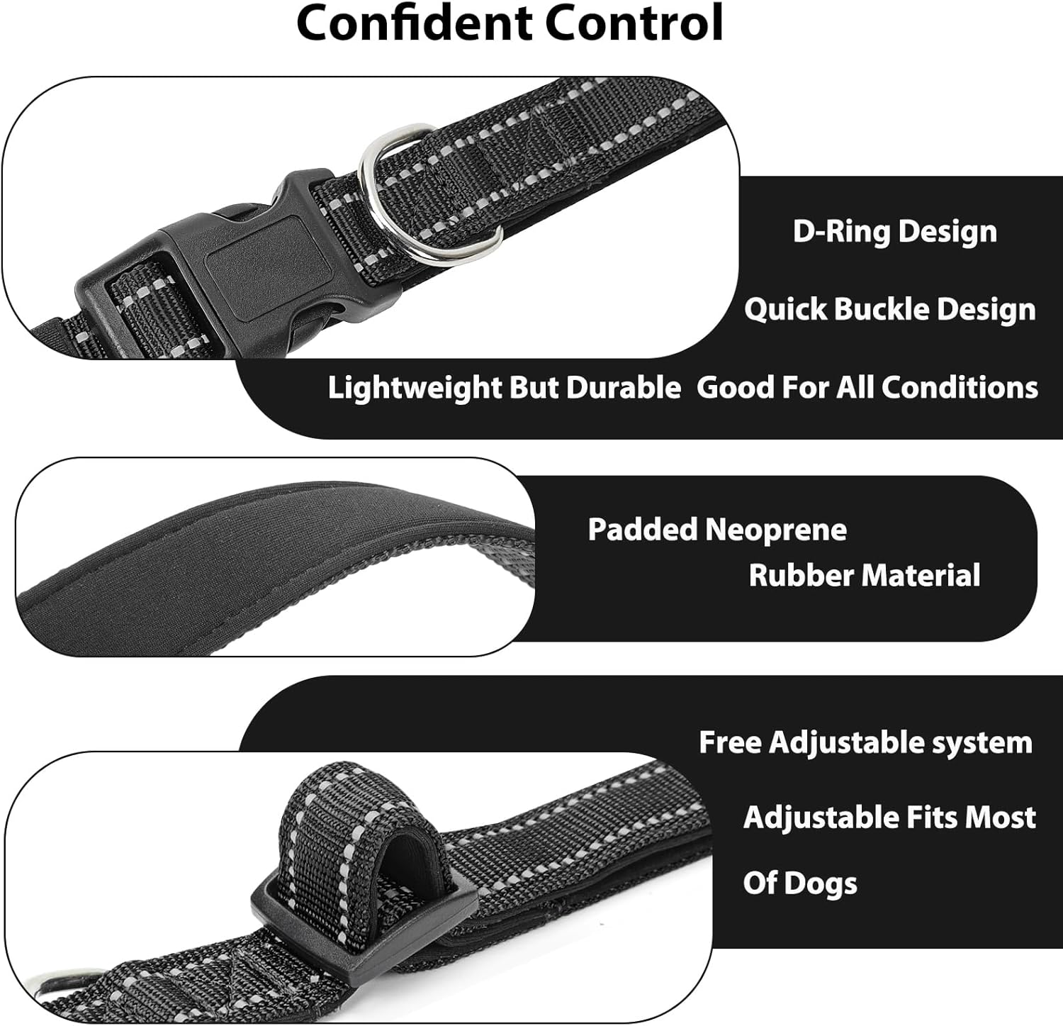 - Design Features:High quality nylon webbing,strong high quality nylon,which is comfortable and breathable, strong and sturdy, higher tensile strength than polyester Strong plastic buckles are made of eco-friendly plastic, high tensile force Heavy duty zinc alloy D-rings for pets with anti-rusty treatment coating Unique herringbone sewing machine, beautiful and durable, special and stylish.