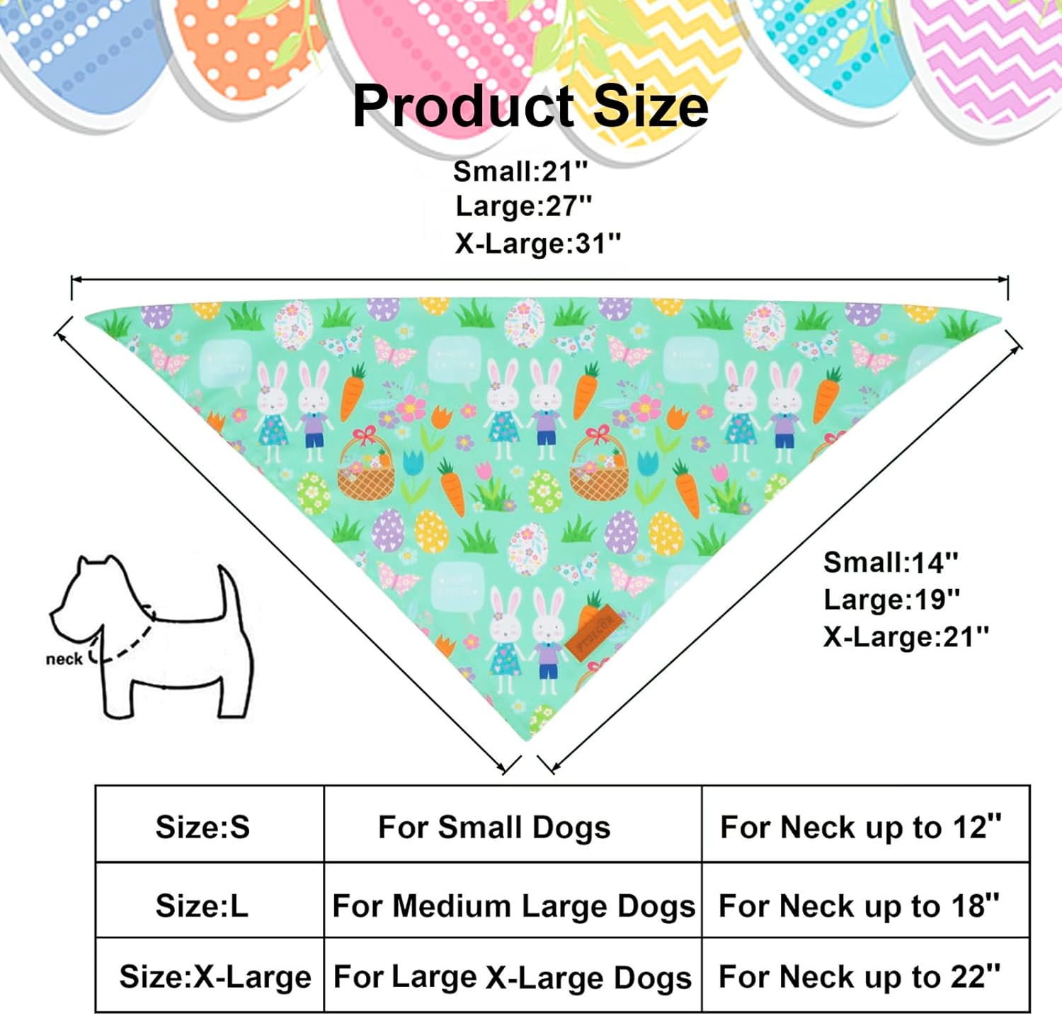 - 2 Pack Dog Bandanas: One package has two different style dog easter bandanas. Both bandanas were full of festival atmosphere, super cute and loved both by your boy and girl! Whether the character of your dog is lively or quiet, these bandanas will fit them all!