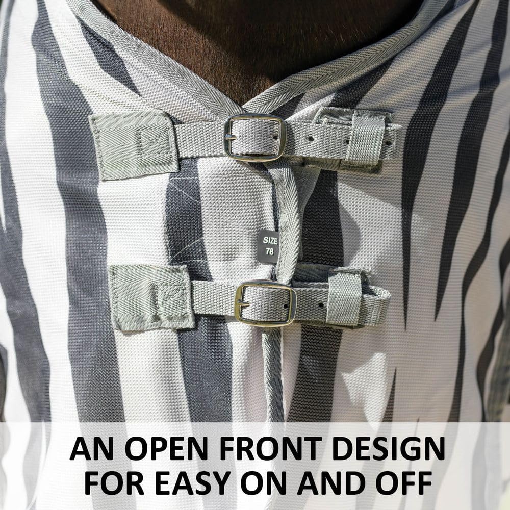 - Color Zebra | Size 84 -DETERRENT ZEBRA PATTERN - The unique zebra print not only adds a stylish flair but also serves a functional purpose by naturally deterring flies from landing on your horse, proven by studies.