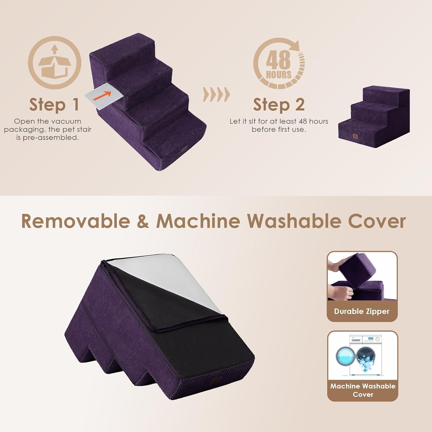 • EASY TO CLEAN - The dog step features a removable and washable cover, which can be cleaned by hand or in the washing machine. This saves you time and makes cleaning incredibly convenient.