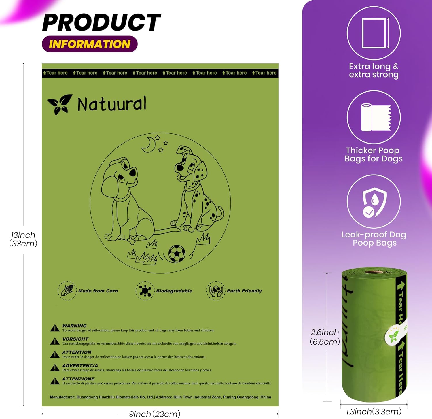 - Green & Strong: These biodegradable poop bags are designed from cornstarch materials, leakproof and tear resistant, that effectively locks in odors.