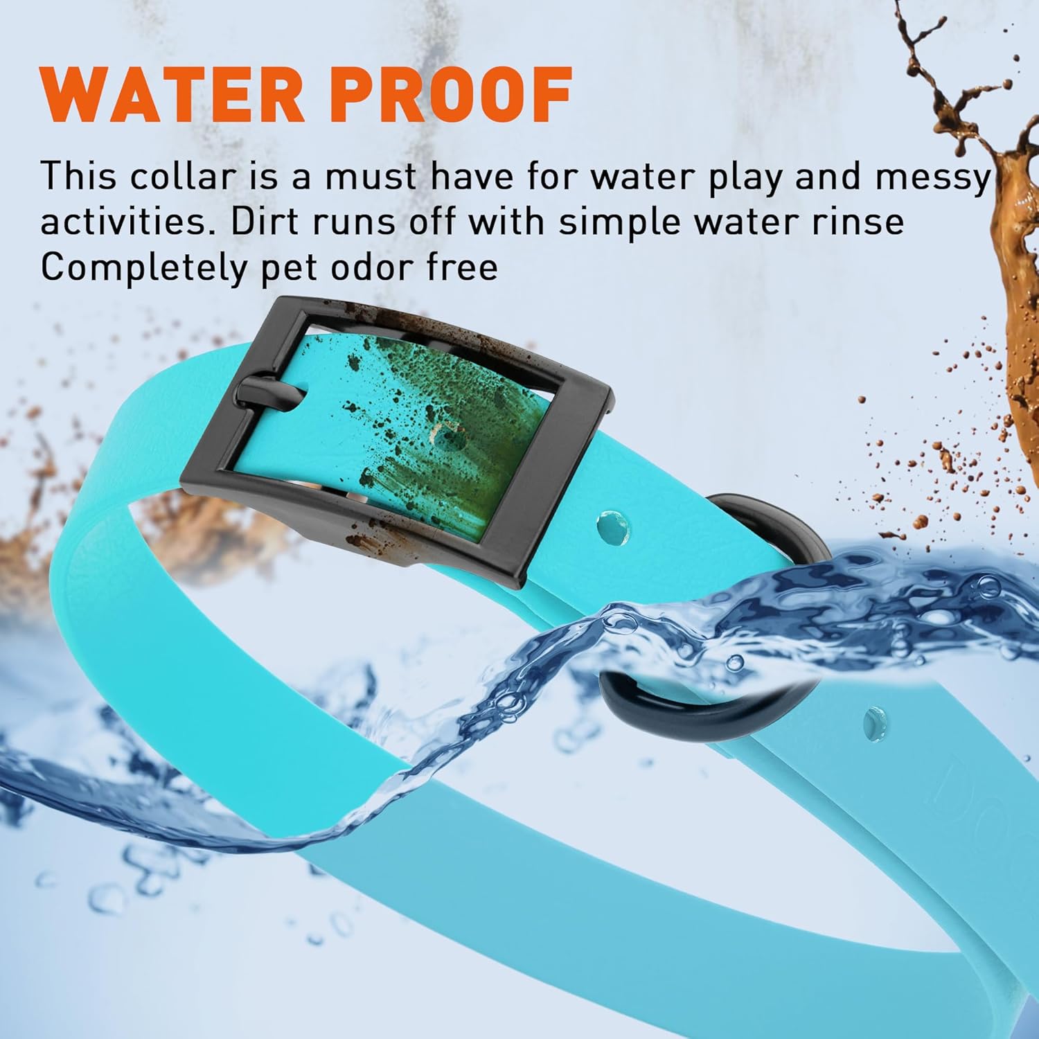 Dogline Biothane Waterproof Dog Collar Strong Coated Nylon Webbing with Black Hardware Odor- Proof for Easy Care Easy to Clean High Performance Fits Small Medium or Large Dogs, Sky Blue