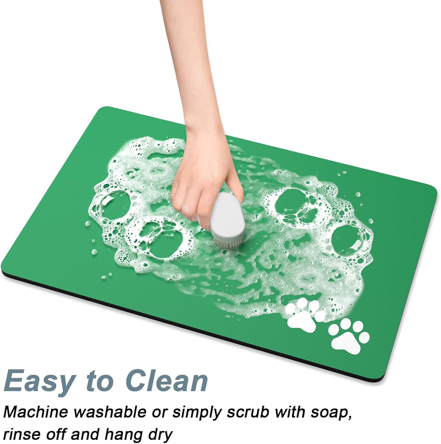 Rnivvi Dog Food Mat, 16" x 24" Footprint Absorbent Dog Cat Bowl Mat for Food and Water, Cute Anti-Slip Rubber Pet Feeding Rug Protect Floors, Puppy Placemat for Feeding & Watering Supplies, Green