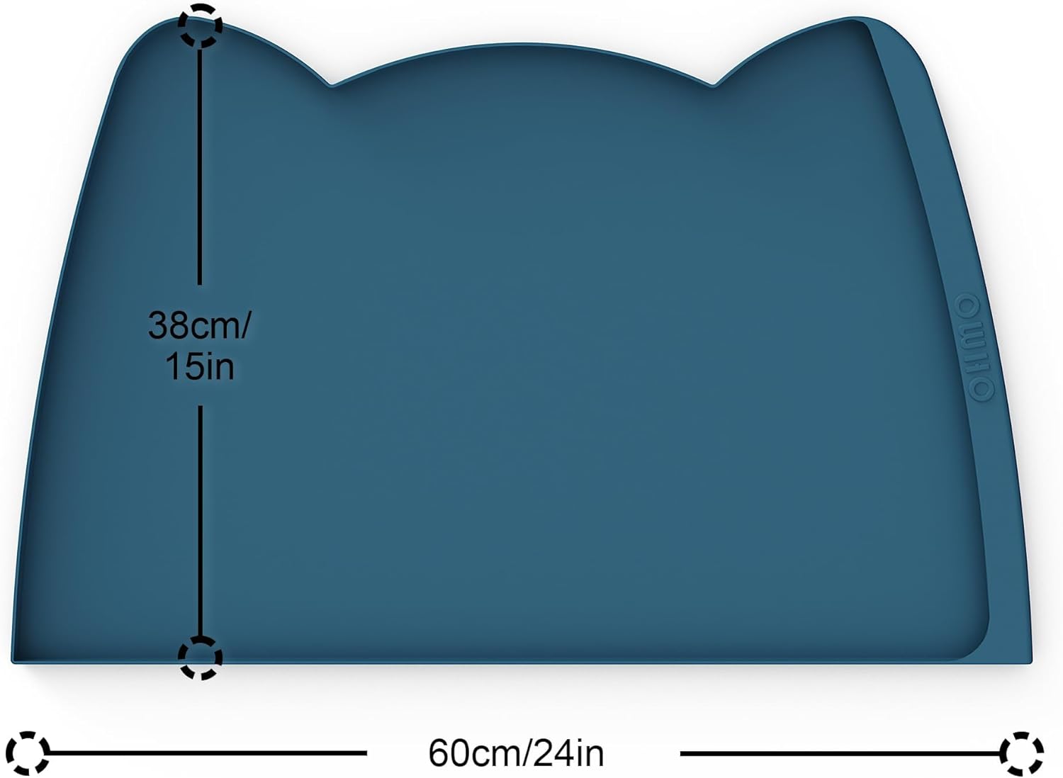 OHMO Dog Food Mat(Teal, 24 * 15'') w/Residue Collection Pocket Silicone Pet Feeding Mat for Floor High Edges Anti Spills Waterproof Cat Water Bowl Tray, Easy Clean Placemat