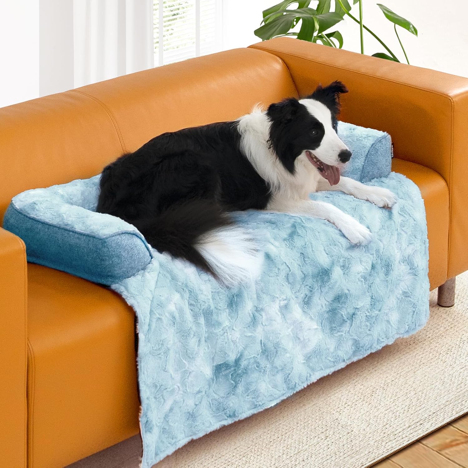 Calming Extra Large Dog Couch Bed for Dogs, 45 x 37 inch Waterproof Removable Pet Mat Couch Cover for Furniture Protector, Non-Slip Fluffy Pelsbarn Dog Bed for Couch, Sofa, Car - Tie-Dye Blue