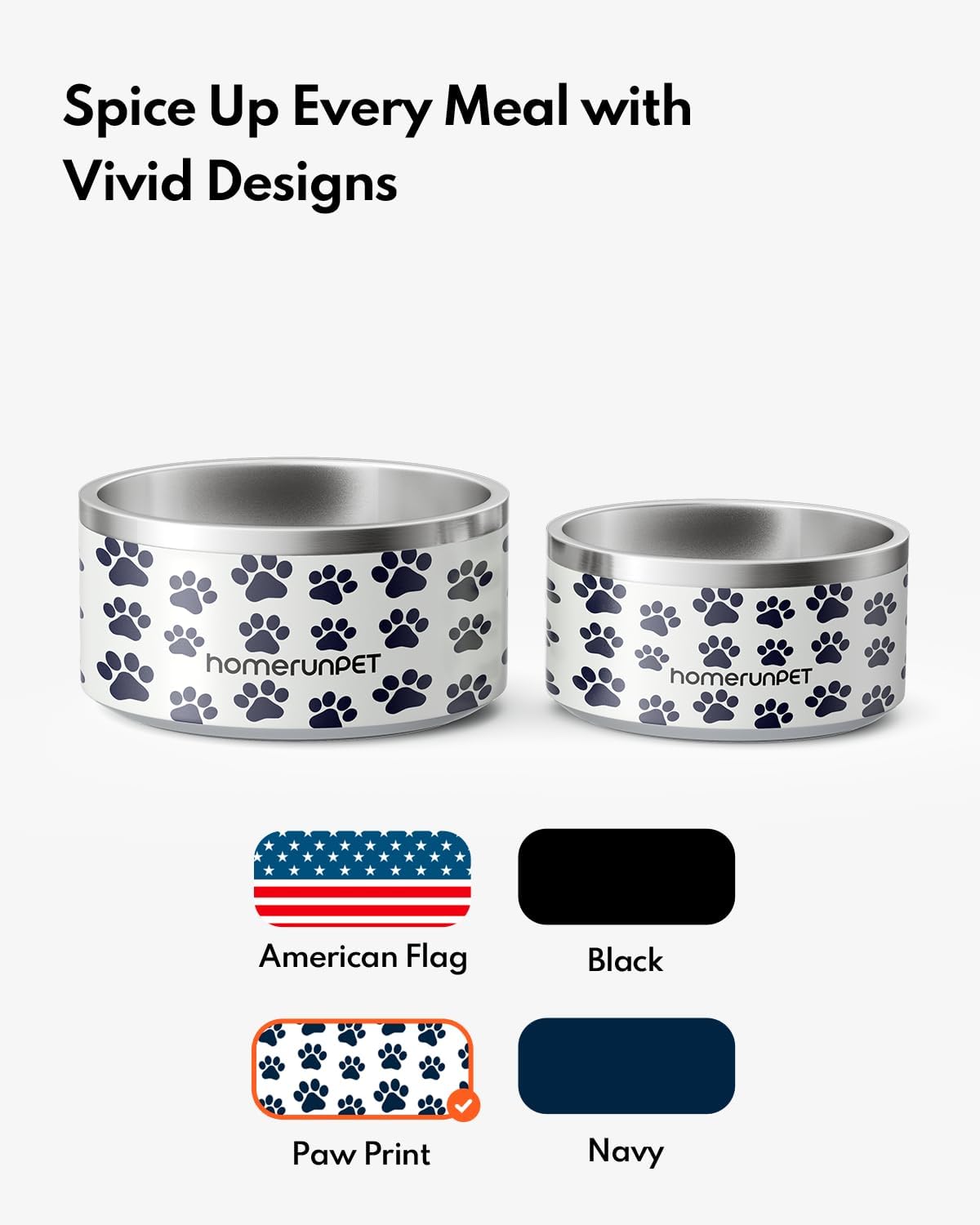 Dog Bowl, HomeRunPet Dog Food Water Bowl with Non-Slip Rubber Base, Metal Insulated Stainless Steel Dog Bowls, Double Wall Dog Bowl for Small Medium Large Dogs, Durable, Dishwasher Safe, 32oz
