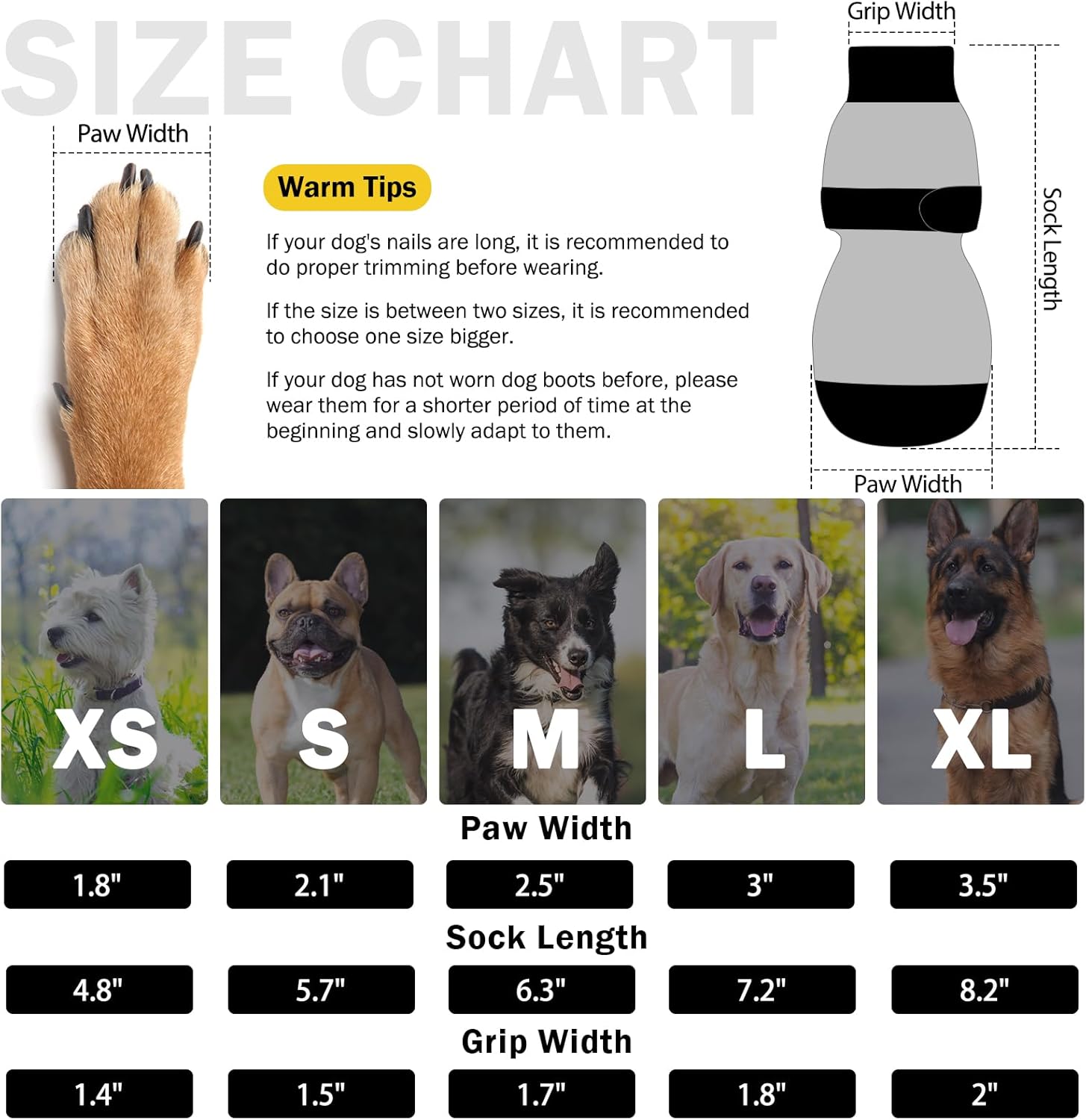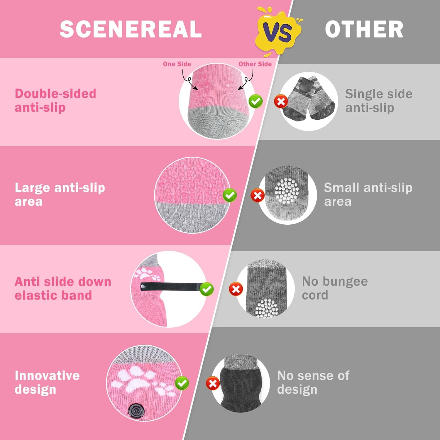 SCENEREAL Anti Slip Dog Sock to Prevent Licking Paws for Hardwood Floors, Boots & Paw Protector Shoes for Hot/Cold Pavement with Grippers, Double Sides Grips for Small Medium Large Senior Dogs, S
