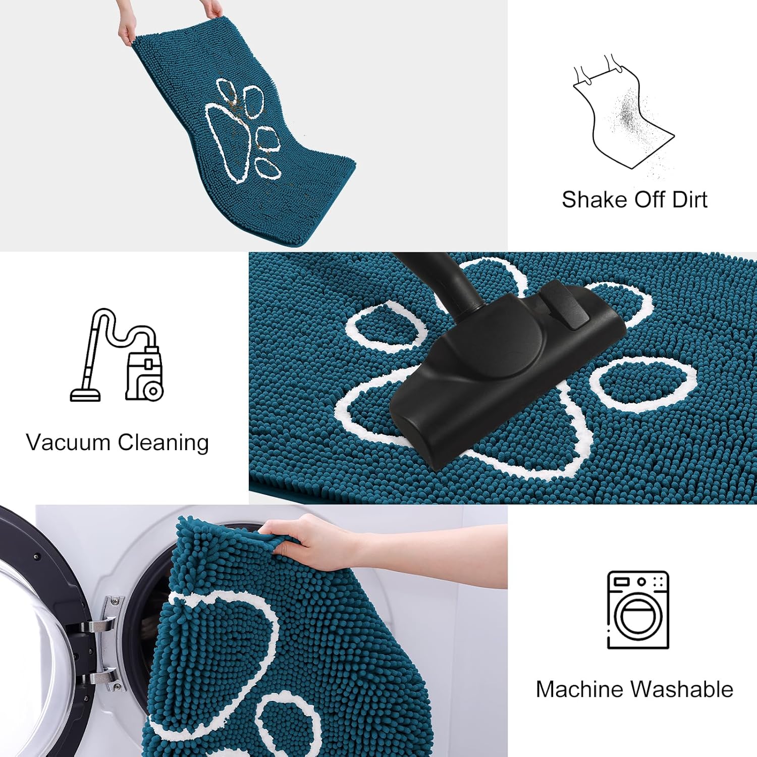 Smiry Dog Door Mat for Muddy Paws, Absorbent Dirt Trapper Non Slip Quick Dry Washable Chenille Mat for Mud Dogs, Entry Rug for Indoor and Outdoor (30x20 Inches, Atlantic Blue)