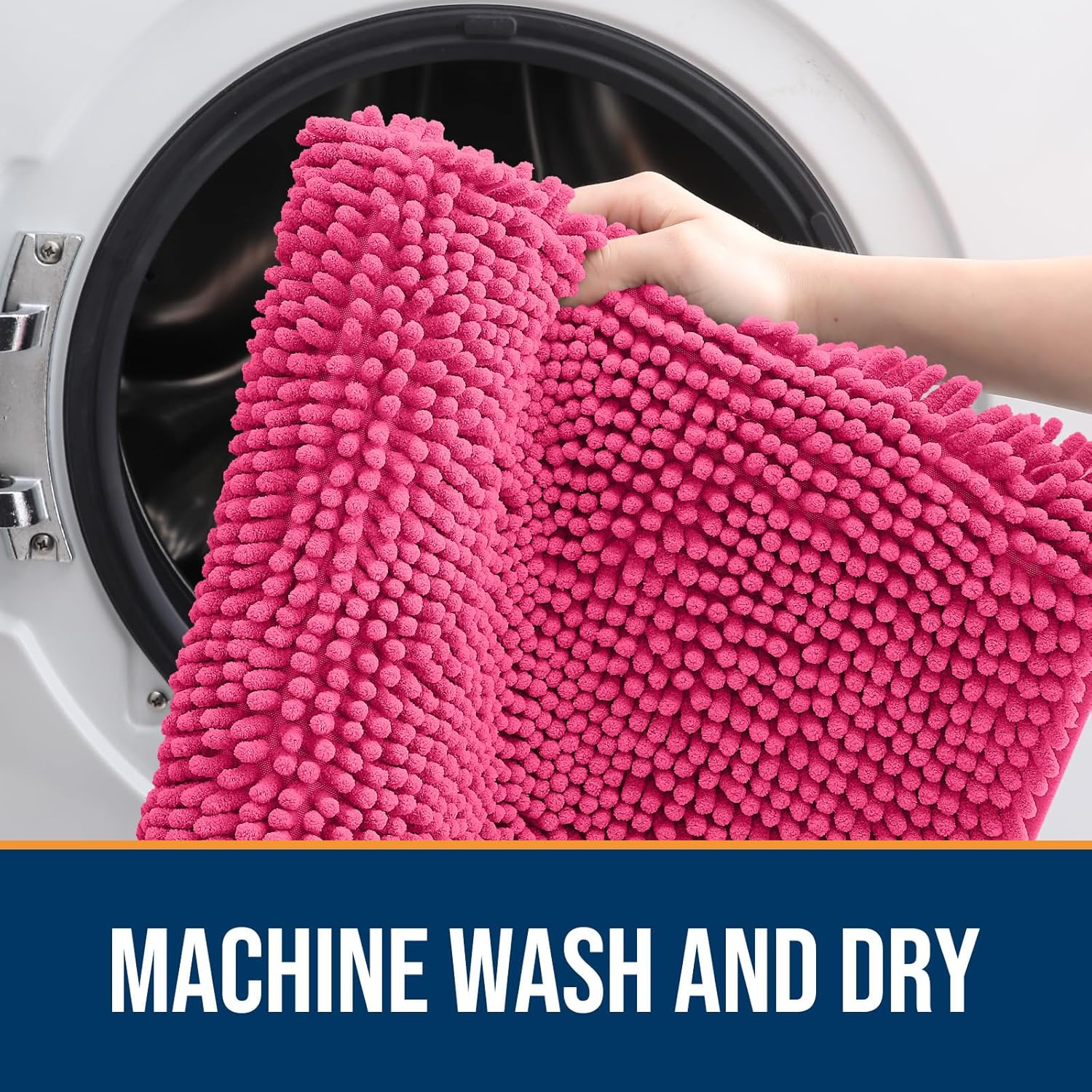 OLANLY Dog Door Mat for Muddy Paws 36x24, Absorbs Moisture and Dirt, Absorbent Non-Slip Washable Doormat, Quick Dry Chenille Mud Mat for Dogs, Entry Indoor Entryway Carpet for Inside Floor, Hot Pink
