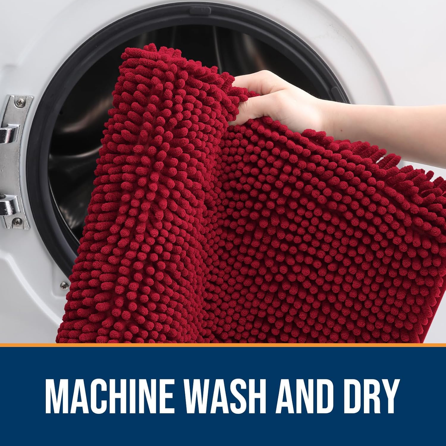 OLANLY Dog Door Mat for Muddy Paws 59x24, Absorbs Moisture and Dirt, Absorbent Non-Slip Washable Doormat, Quick Dry Chenille Mud Mat for Dogs, Entry Indoor Entryway Carpet for Inside Floor, Red