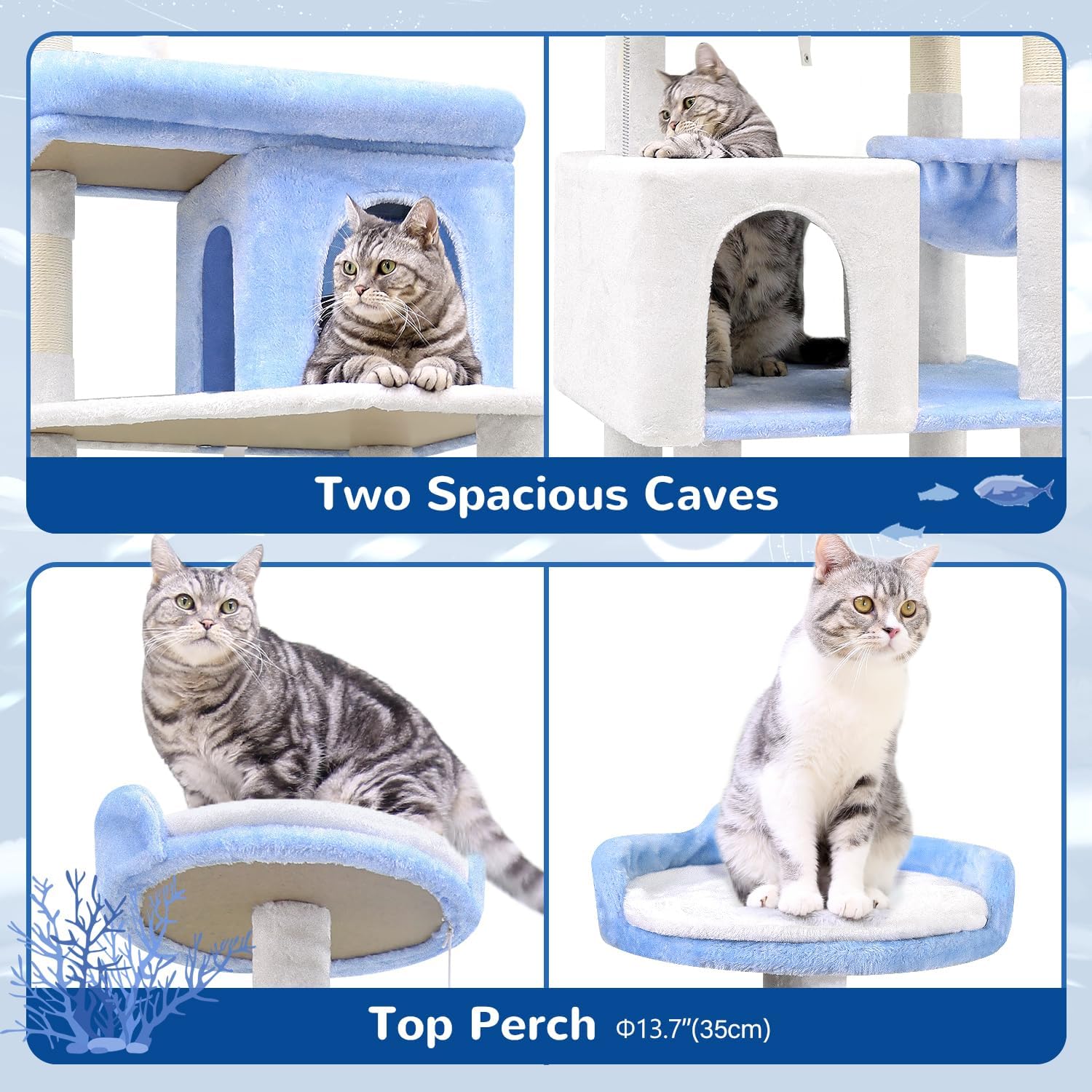 Globlazer Heavy Duty Cat Trees for Large Cats, Sturdy 72in Maine Coon Cat Tree for Large Cats 20 lbs+ Heavy Duty Cat Tower for Adult Biggest Cat with 6 Scratching Posts, Hammock, S72, Ocean Blue