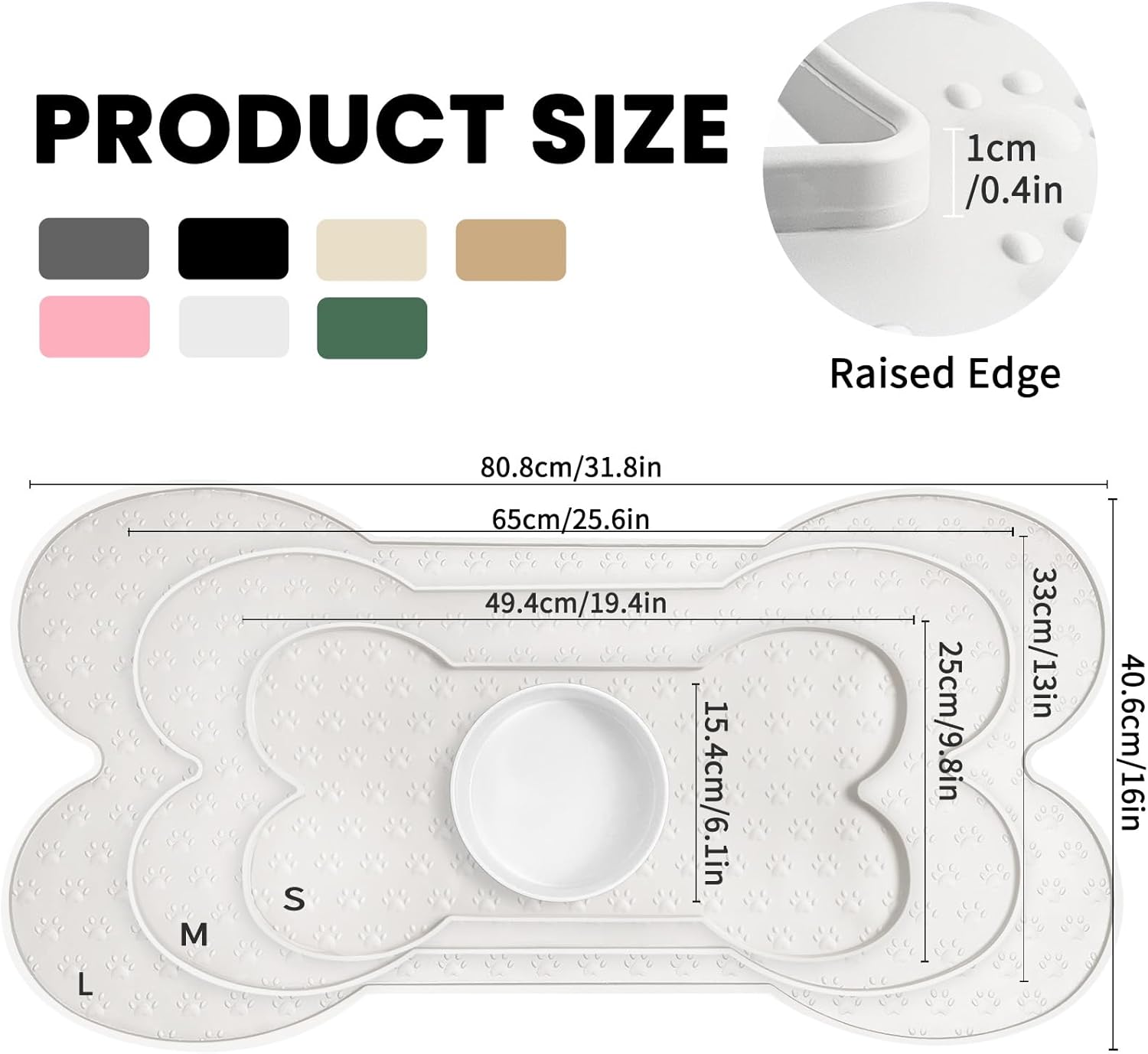 - Health Silicone Material - This pet bowl mat is non-toxic, and non-allergenic, protecting the health and safety of your pet's feeding. 25.6" x 13" holds two regular big bowls, perfect for medium to large-sized dogs and cats to enjoy a delicious meal tray.