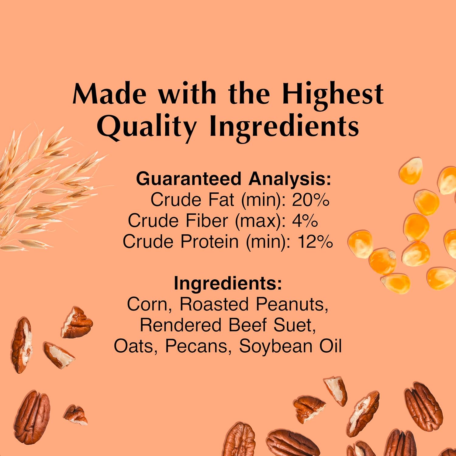 - IDEAL FOR YEAR-ROUND FEEDING, no melt suet is processed and formulated to have a higher melting point of up to 100º F; This makes it a great suet for warmer weather