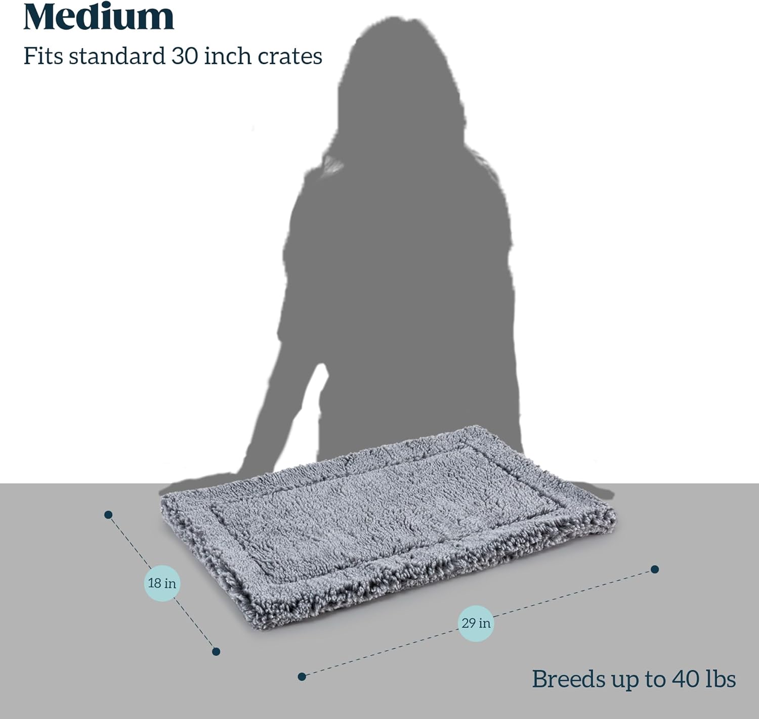 - Fits Standard Crates - The dog crate bed is compatible with 30 inch long dog crates and works perfectly as a stand-alone dog bed mat | 29 inch long durable dog bed is ideal for medium dog breeds weighing up to 26-40 pounds