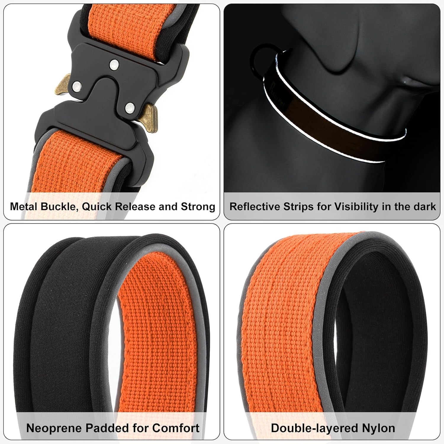 Plutus Pet Tactical Dog Collar, Reflective, Adjustable Heavy Duty Dog Collar, Soft Padded and Comfortable, for Small Medium and Large Dogs (Orange, XL)