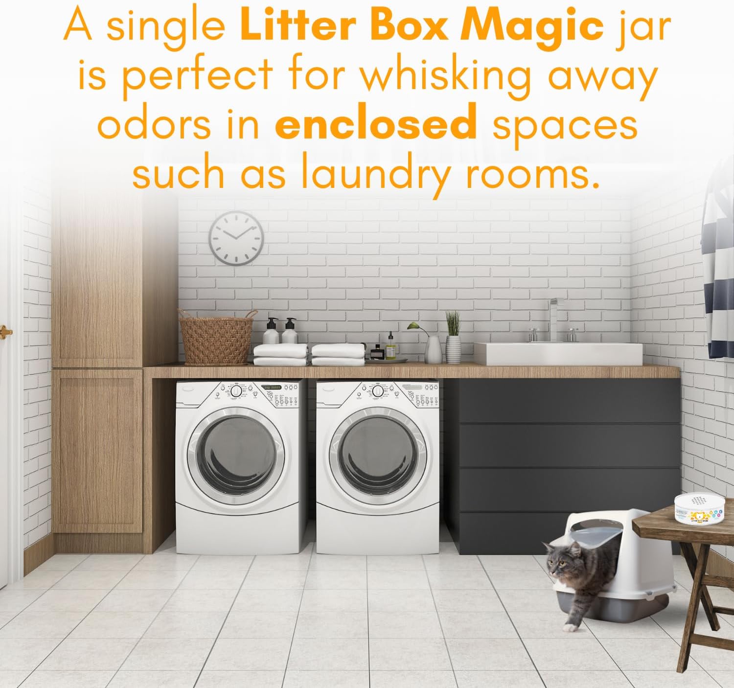 - HIGH-QUALITY LITTER BOX ODOR ABSORBER INGREDIENTS - Our cat litter smell eliminator is crafted with the best ingredients that effectively neutralize litter box odor. Each component is carefully selected for its proven ability to eliminate unpleasant smells, ensuring your home stays fresh and clean. Our formula is safe and powerful, absorbing unwanted odors at the source. Experience a cleaner, fresher space with Litter Box Magic’s litter box odor control power!