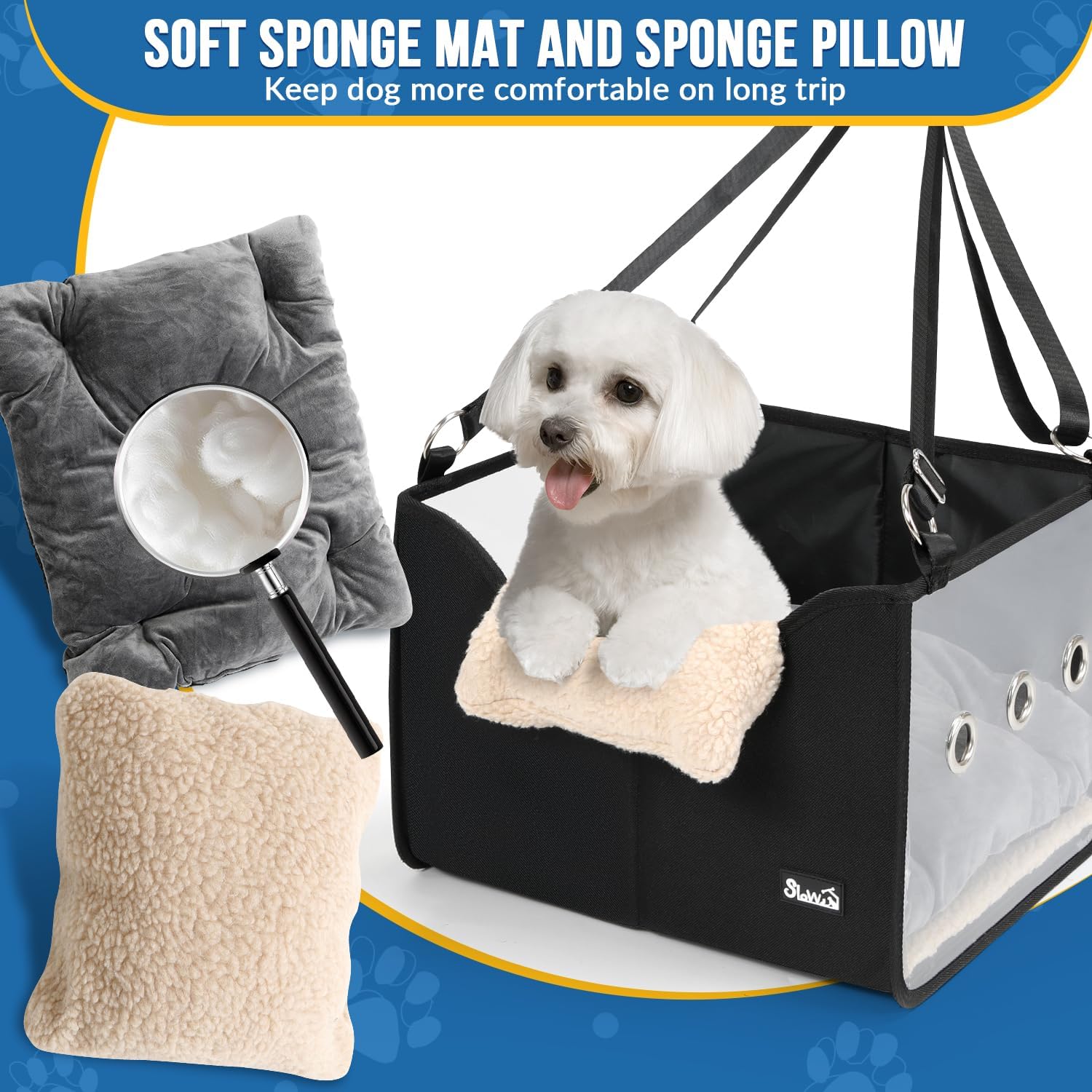 - Cotton Pad & Pillow Design --- The small dog buster seat has a strong plastic support plate to keep the base flat and prevent collapsing or slipping out, ensuring the safety of the pet dogs. And it includes 2 spongy pads for added comfort, one on the bottom and the other as a front pillow to make travel easier for your dogs.