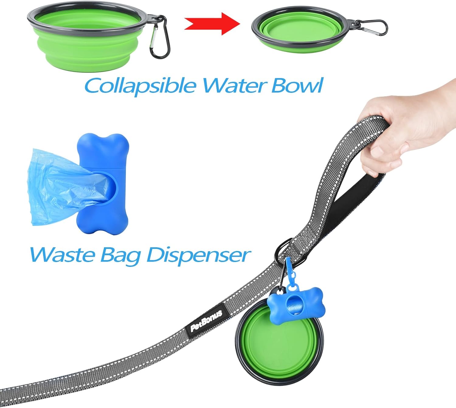 • More Convenient to Use: Each dual dog leash package includes one collapsible dog bowl and one waste bag dispenser