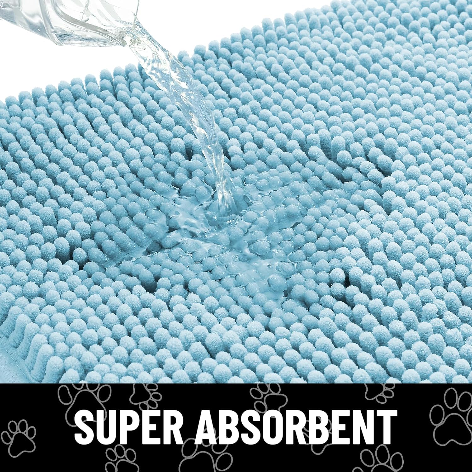 Smiry Dog Door Mat for Muddy Paws, Absorbent Dirt Trapper Non Slip Quick Dry Washable Chenille Mat for Mud Dogs, Entry Rug for Indoor and Outdoor (30x20 Inches, Sky Blue)