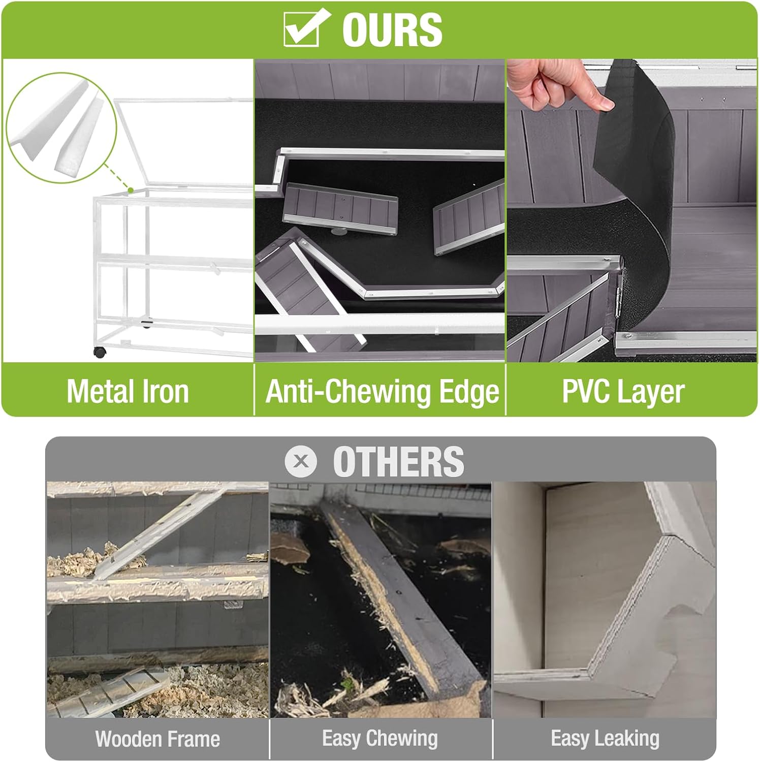 • Strong Metal Frame & Anti-Chewing Aluminium Alloy Edge Our guinea pig cages boasts a metal frame and anti-chewing aluminum alloy edge, ensuring durability and resistance to even the most determined nibbles. Perfect for hamsters, guinea pigs, and other small animals.