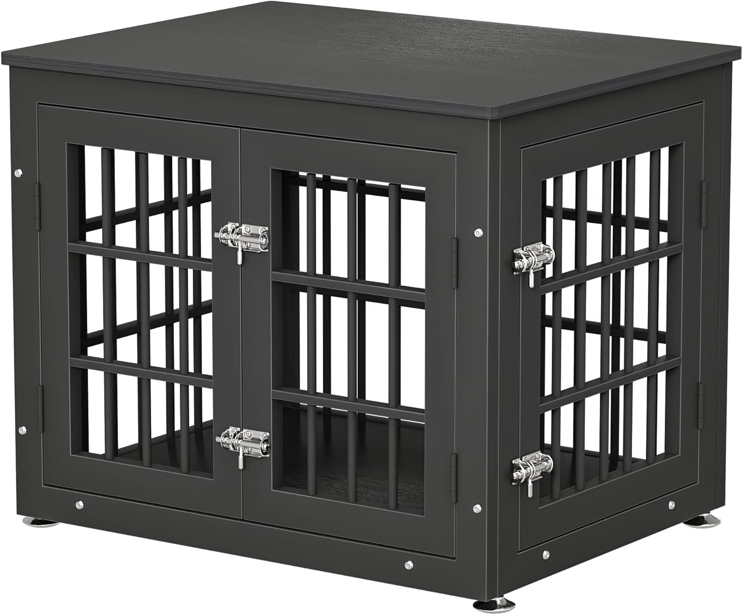 - 【Safety Guaranteed】 The metal coating and board surface are non-toxic if the dog chewed or licked. The sliding latches on the front door and side door prevent the high anxiety dogs from opening the door and escaping.