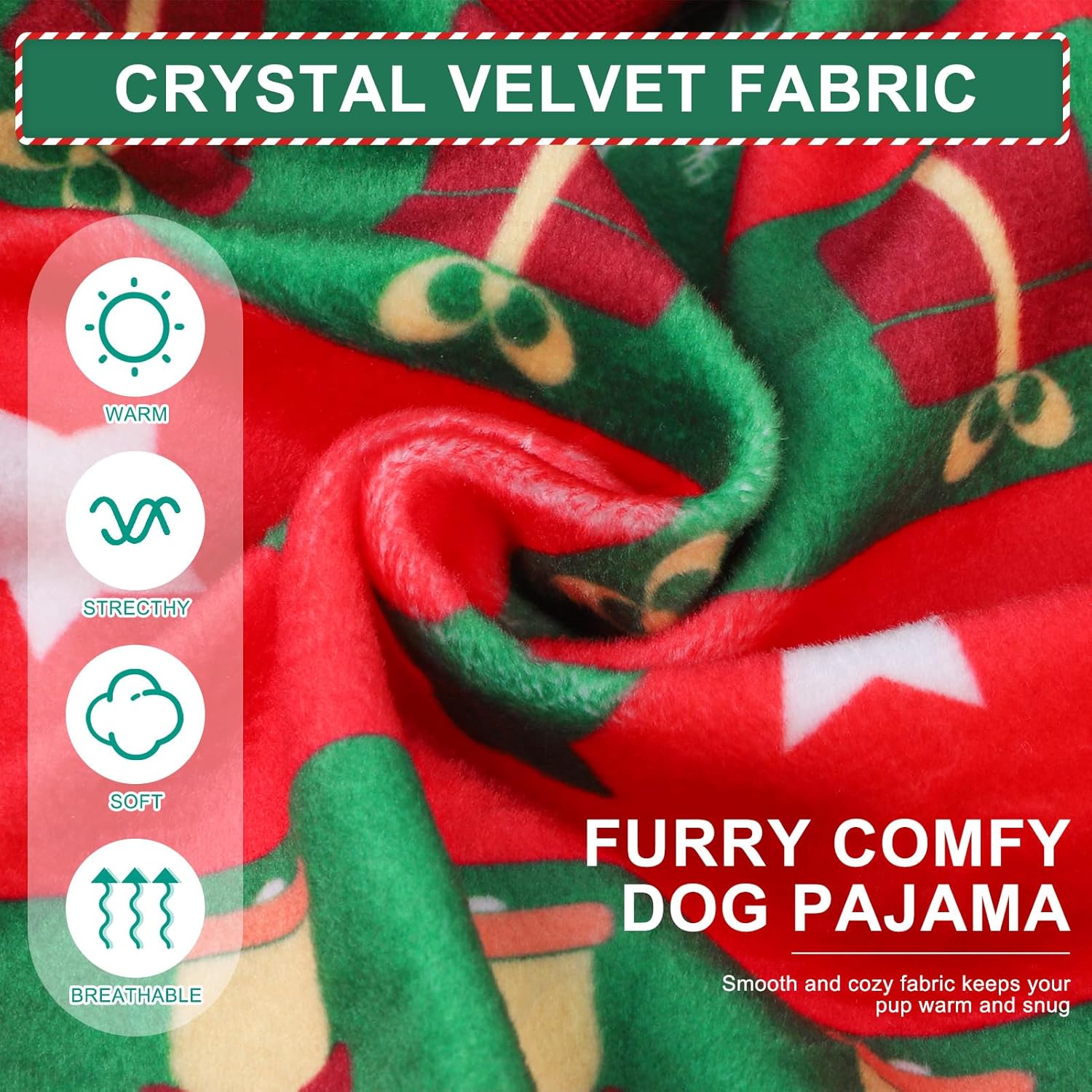 • High-quality Material: Our dog pajama use premium crystal velvet fabric that is soft, comfortable, and non-irritating, giving your pet the ultimate comfort. At the same time, this fabric has excellent insulation properties, effectively blocking out cold air and providing a warm environment for your pet.