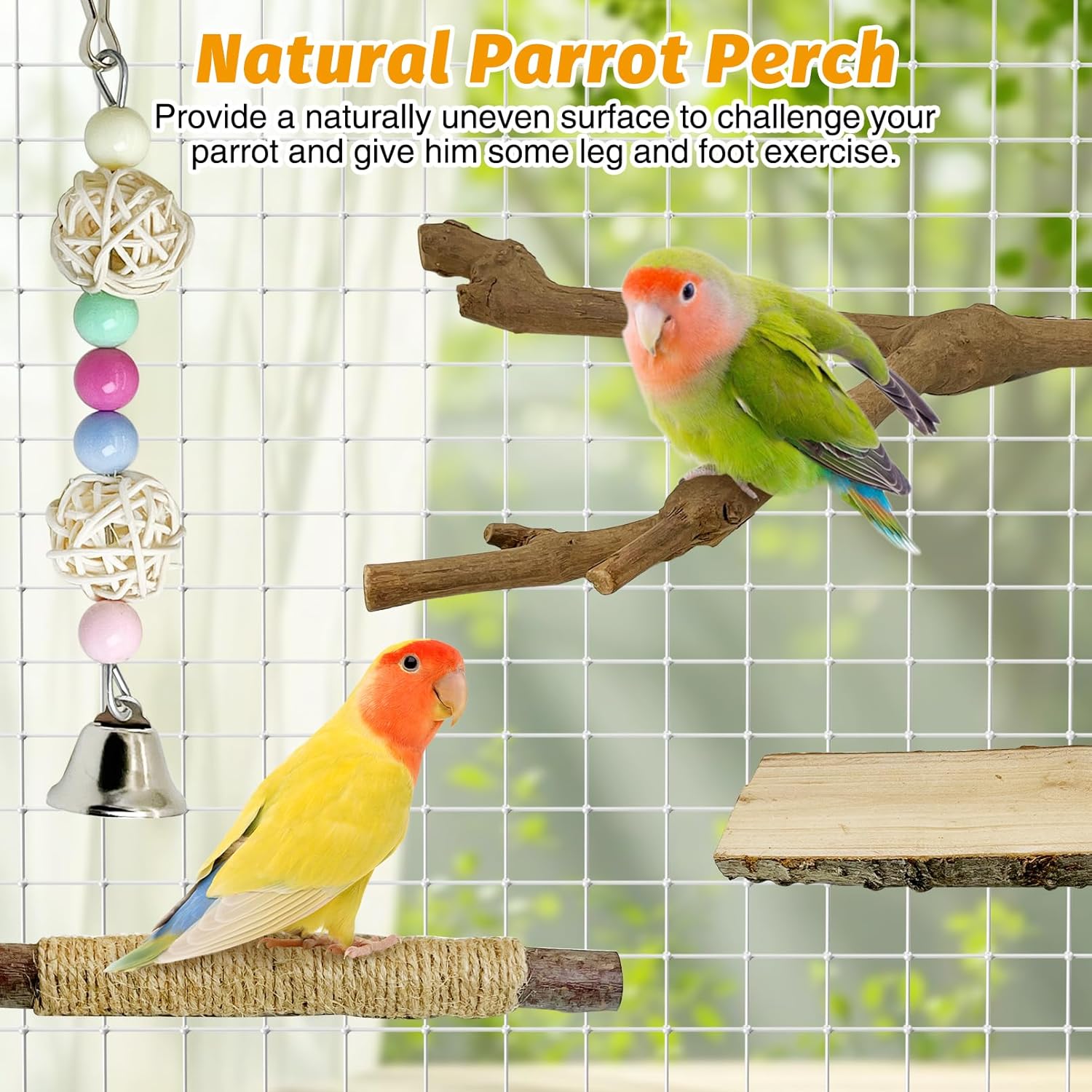 - [Applicable Birds]: These parrot perches are suitable for a wide range of bird species. Such as parrots, parakeets, macaws, African gray parrots, mandarin ducks, budgies, cockatoos, canaries, sparrows and other small and medium-sized birds