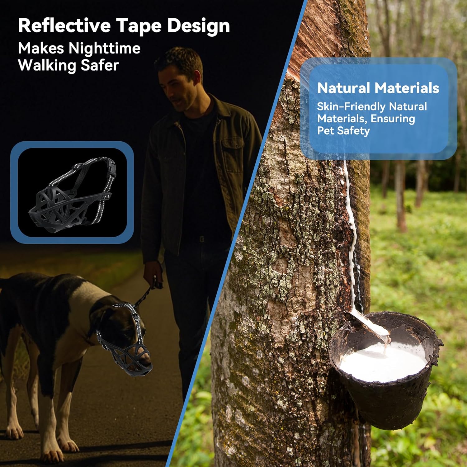 • Easy to Put on and Remove: Designed for Convenience, The Adjustable Straps on Our Dog Muzzle Allow for Quick and Secure Fitting. The Ergonomic Design Ensures a Hassle-Free Experience for Both You and Your Dog, Making it Ideal for Daily Walks, Training Sessions, Or Visits to the Vet. Reflective Strap Design Provides Night Travel Safety
