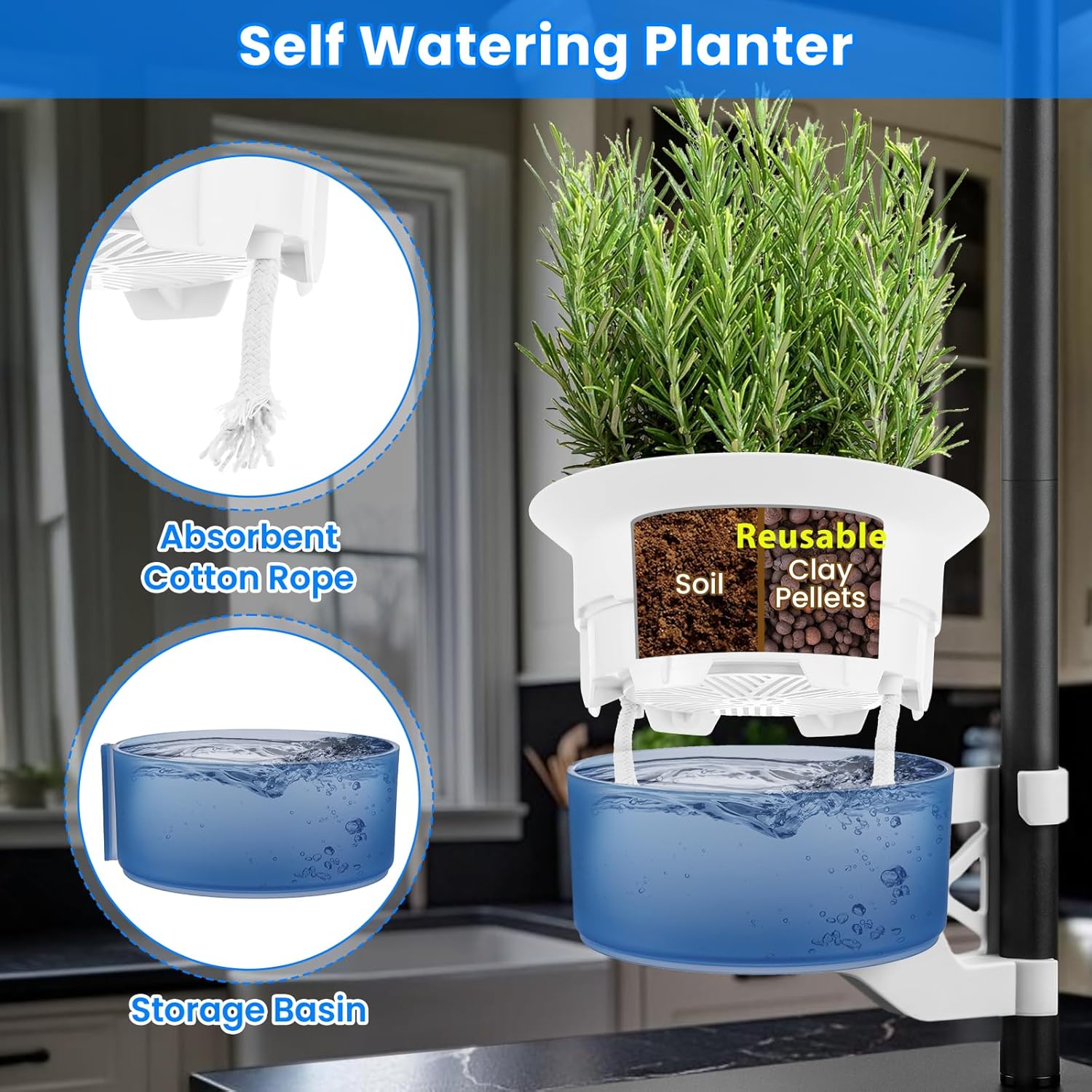 - · Dual Purpose Planters with Built-in Absorption Cotton: The system offers a dual-purpose planter with built-in cotton wicks, perfect for both soil and hydroponic growth. Whether you prefer plant pots with stands or plant grow lights for better lighting, this setup ensures your plants thrive, a great Indoor gardening system for you, both soil grow and hydroponic grow is fine