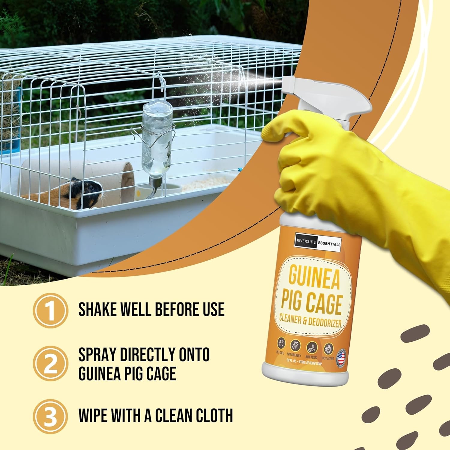 - Powerful Cleaning Formula: This premium cage cleaner is specially designed to effectively remove tough stains, odors, and residue from guinea pig habitats, leaving a fresh, clean, and hygienic environment for your pet.