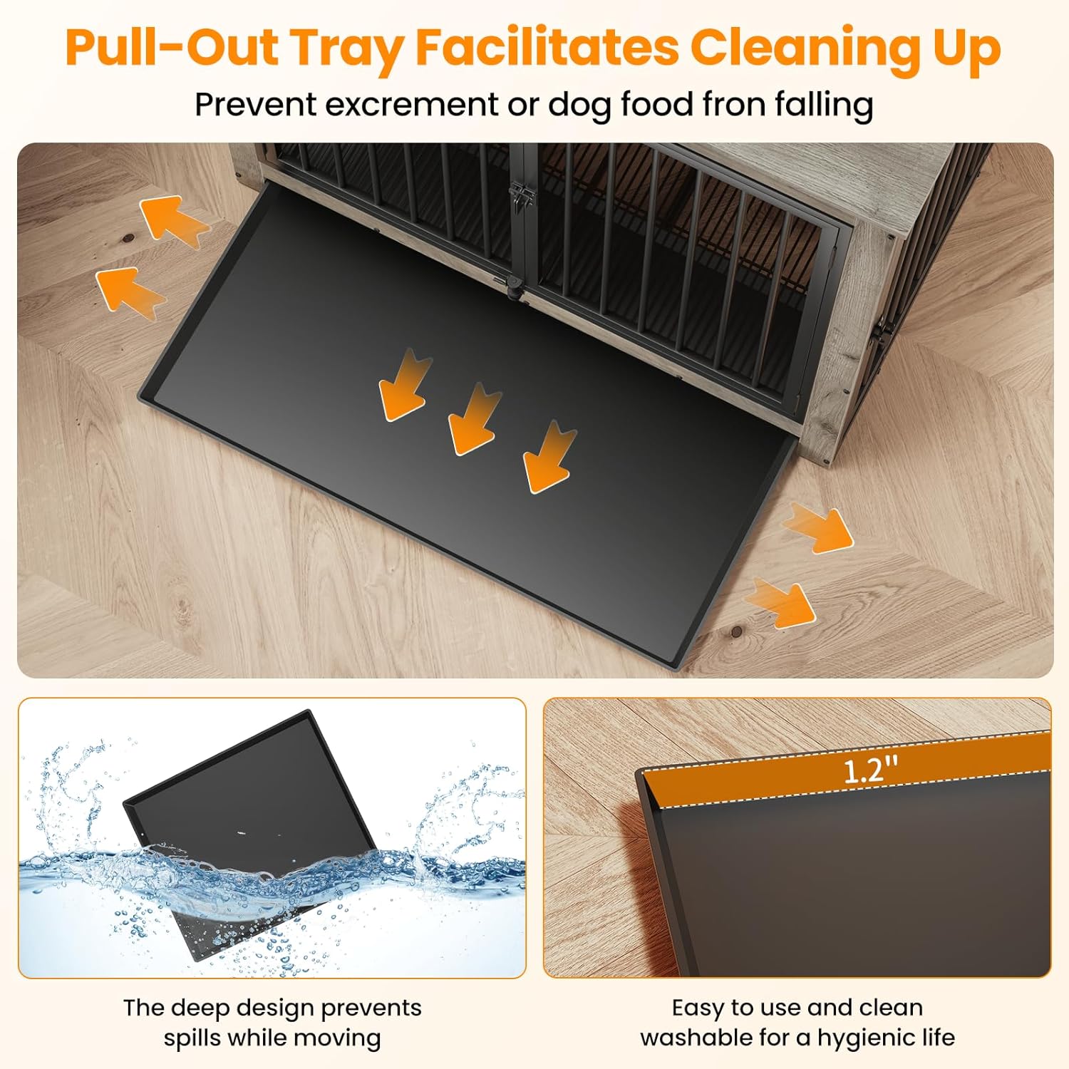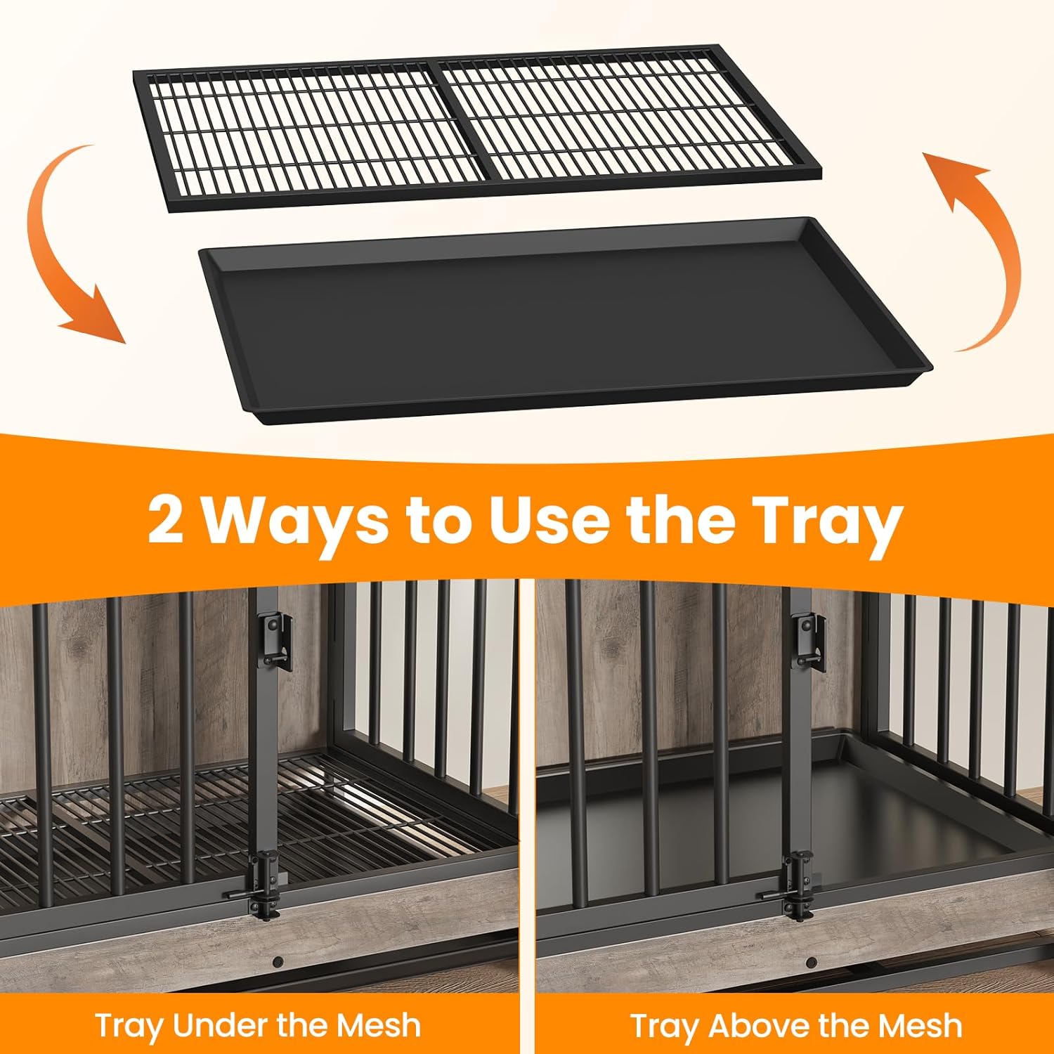 - đ¶ăVersatile Tray UsageăPut the tray under the bottom mesh to catch crumbs, fur, and dirt, keeping your dog's place clean without dirtying your floor, maintaining a tidy living space for your pet, or place the tray above the mesh to offer your dog a flat, comfortable surfaceâit's up to you