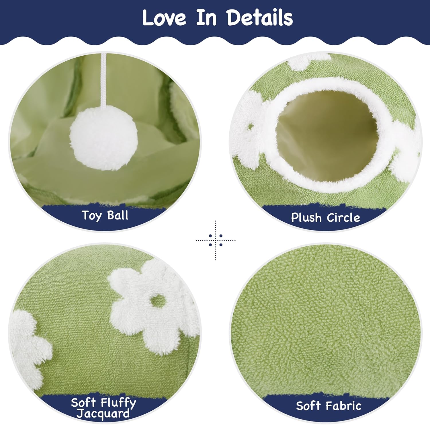 Tempcore Flannel Pet Cat Tunnel Tube Cat Toys 3 Way Collapsible, Cat Tunnels for Indoor Cats,Kitty Tunnel Bored Pet Toys Peek Hole Toy Ball Puppy, Kitty, Kitten, Rabbit Daisy Green