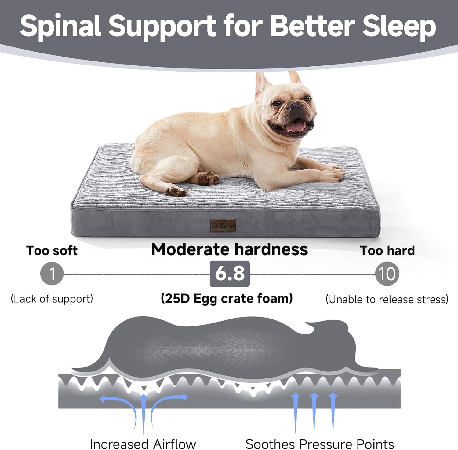 • Luxurious Comfort & Durability: Enjoy premium quality materials – plush corduroy surface with a 2-3 mm hair length, bonded with TPU for water resistance, and 25D Egg Crate Foam. Rest assured, our beds pass rigorous CP65 testing, ensuring safety and comfort for your pet.