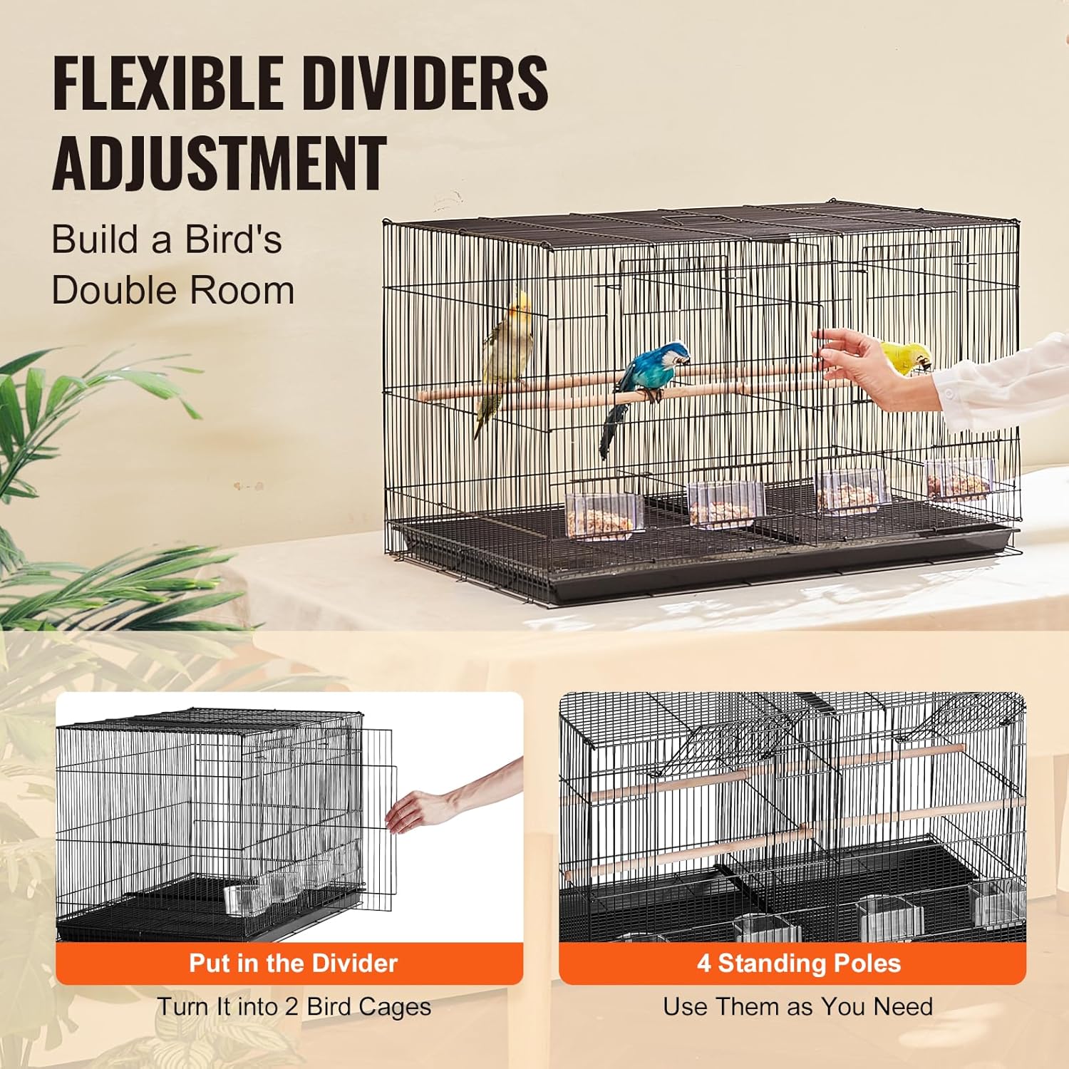 • Flexible Divider Design: Insert the shelf and the birdcage can be divided into two independent living spaces, especially suitable for keeping different species of birds.