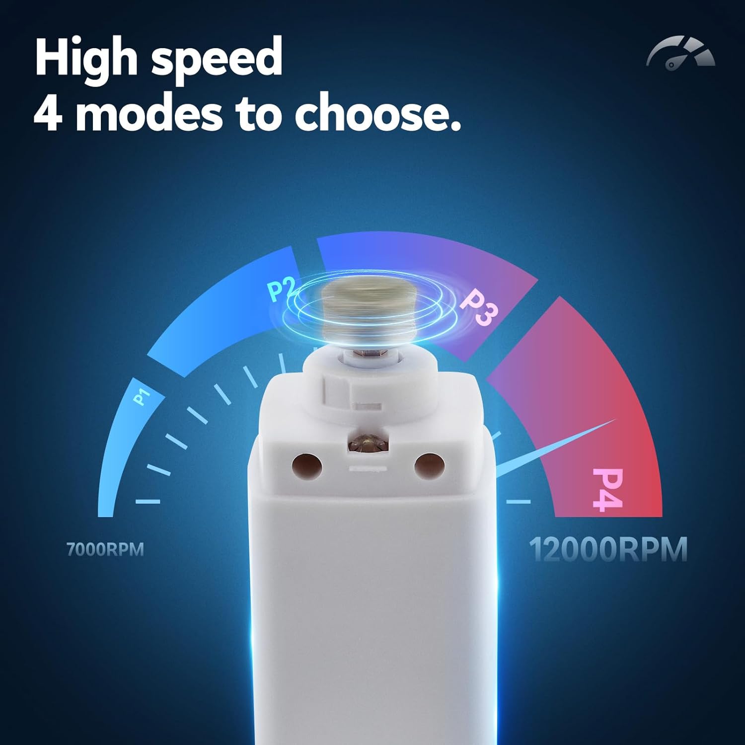 - Practical LCD Screen Display: The nail grinder has an LCD screen, which adds a sense of technology and improves the overall quality of the product. It allows you to clearly see the current working status, such as speed levels, battery power. Intuitive and simple operation interface,making it easier to use.Users can adjust settings according to their needs.