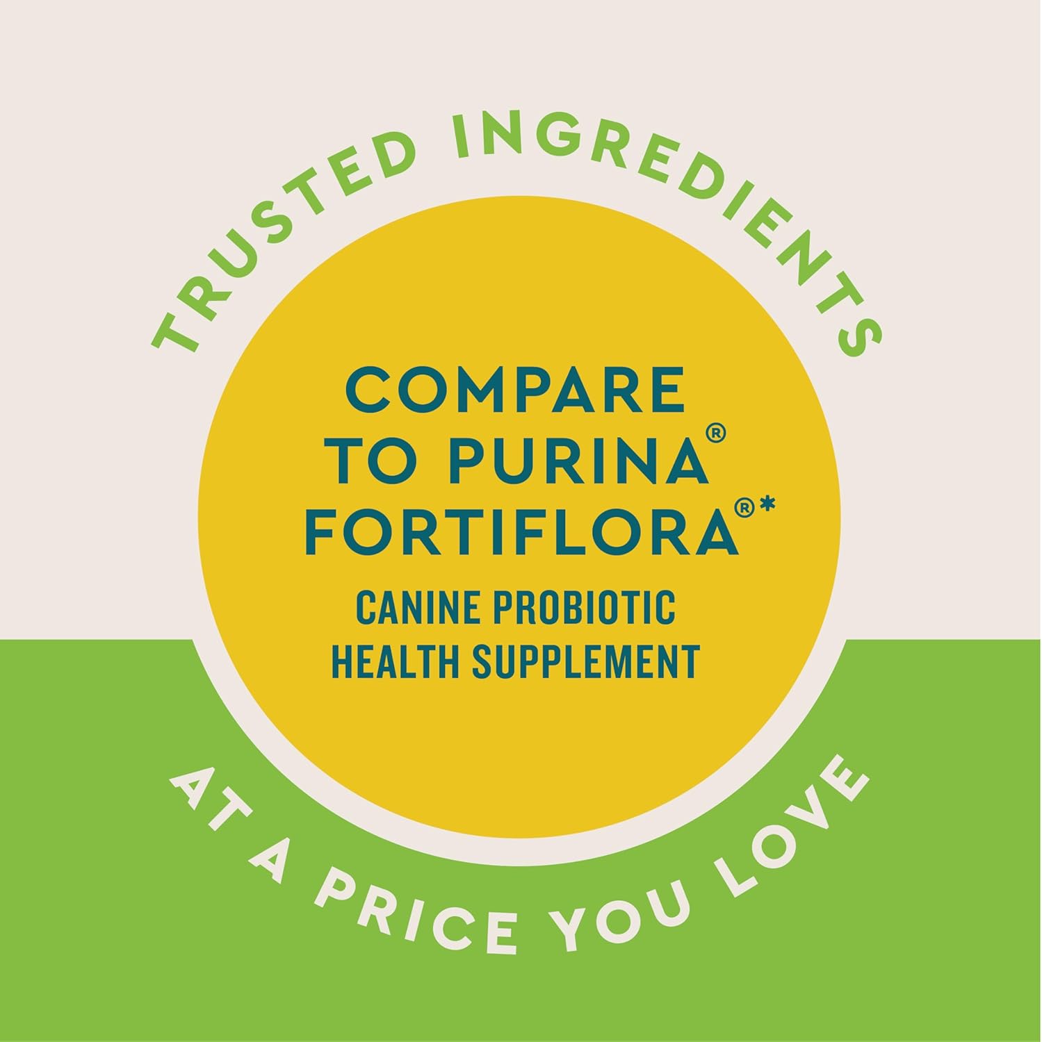 - Compare to the Leading Brand: VetIQ Digestive Probiotic for Dogs is made with an active probiotic comparable to Purina Fortiflora, but at a price you’ll love; Delivers trusted, high-quality digestive support you can feel confident giving to your dog