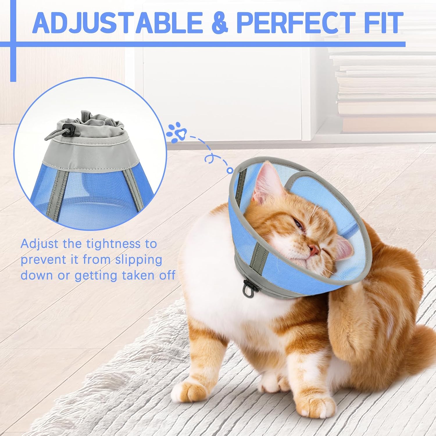 - Adjustable and Secure Fit - One of the most common issues with cat e collar is slippage or falling off. Our innovative design includes an adjustable strap that can be customized to fit snugly around your cat's neck, ensuring a secure and comfortable fit. This adjustability means you can easily adapt the kitten cone to your cat's unique neck size, providing peace of mind during their recovery.