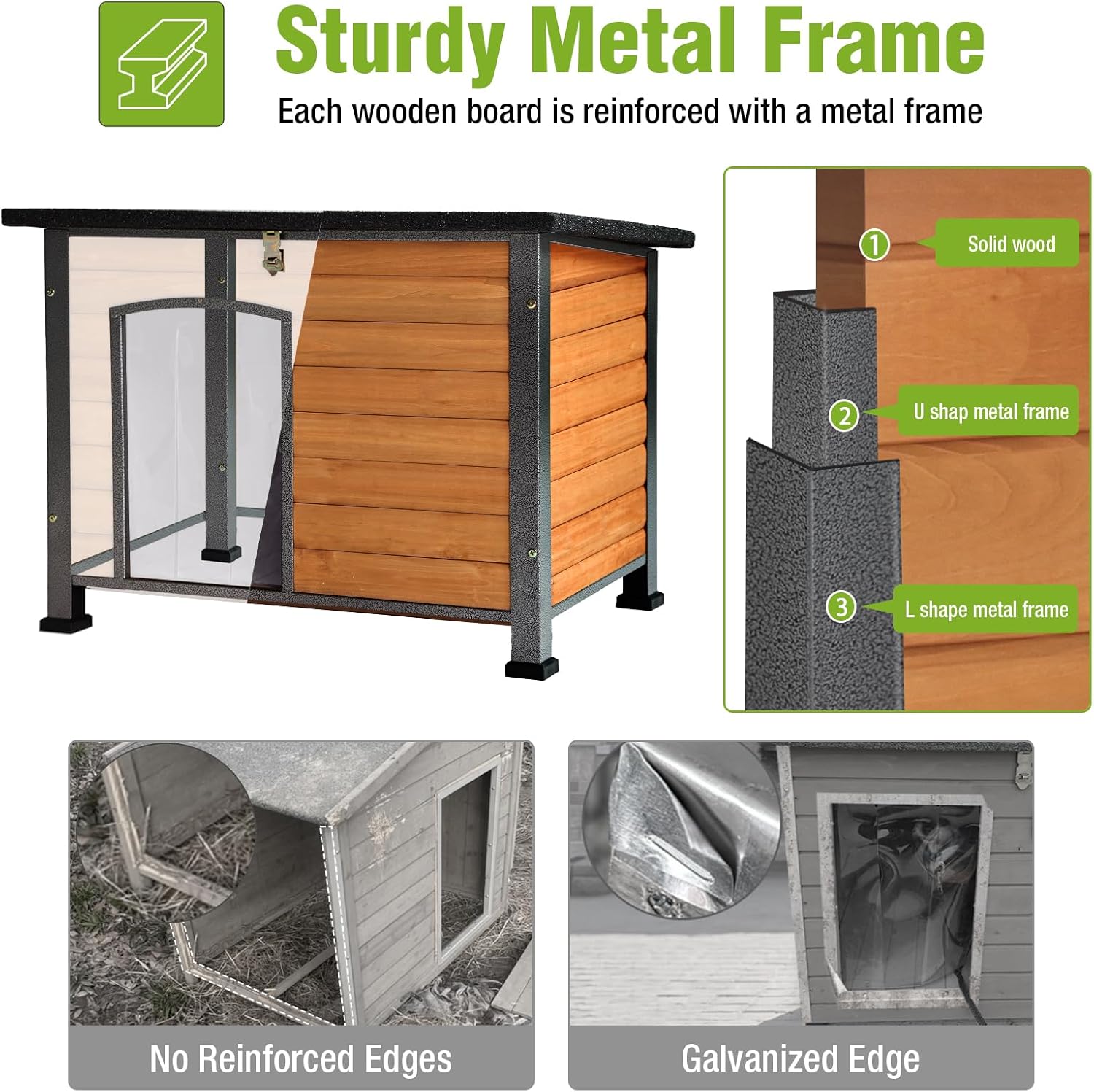 • Indestructible Metal Frame: Reinforced with a sturdy iron frame, making the dog house exceptionally durable and preventing pets from chewing through