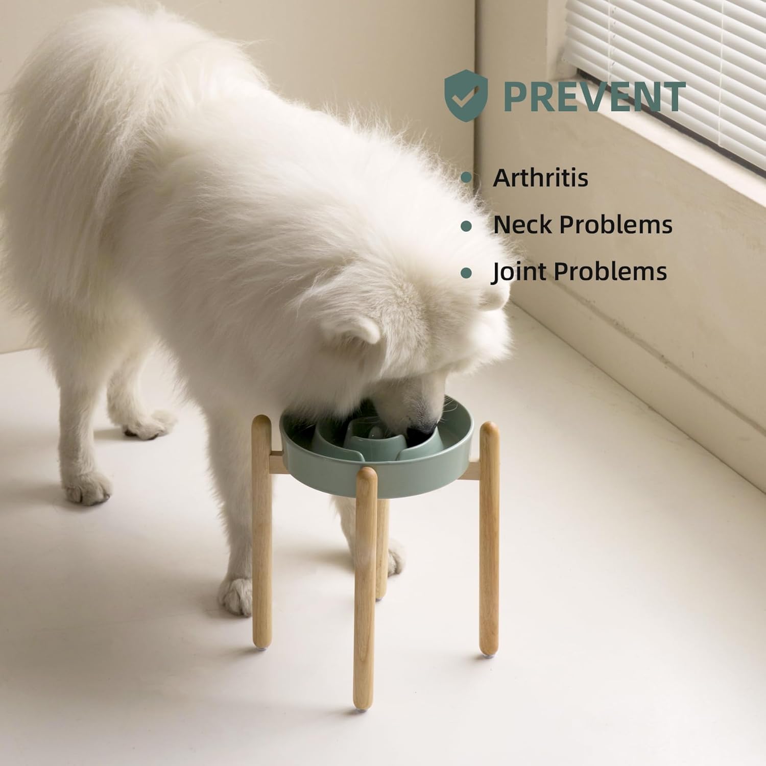 9.5inch Ceramic Raised Slow Feeder Dog Bowl Set, Elevated Bowl with Wooden Stand for Large Dog, Puzzle Slow Pet Food Dish, Preventing Choking(Light Green, Single Bowl+ Stand)
