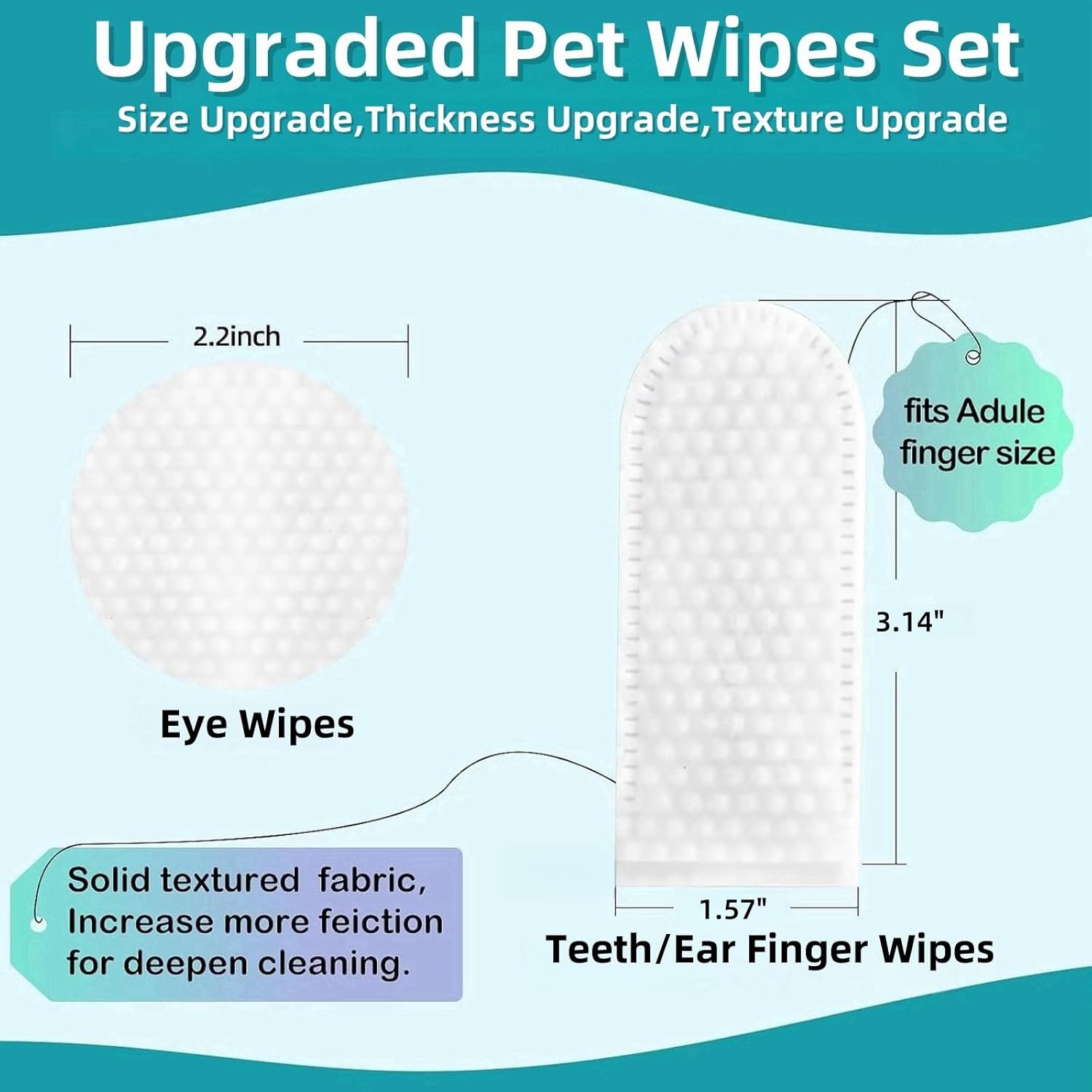 Pet Cleaning Wipes Kit For Dogs&Cats,includes Ear Finger Wipes,Teeth Finger Wipes and Eyes Wipes,Gently Clean Dogs&Cats Ear Wax,Remove Plaque&Tartar Buildup and Reduce Tear Stains,Non-Irritatingogs