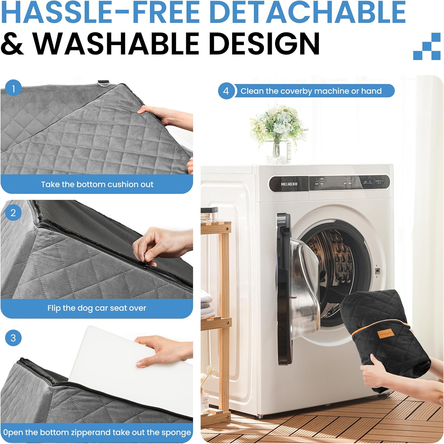 - Easy to Install & Clean: The adjustable straps securely attach to your car’s seats, and the removable cover makes cleaning hassle-free. Keep your car clean while giving your pet the best travel experience!