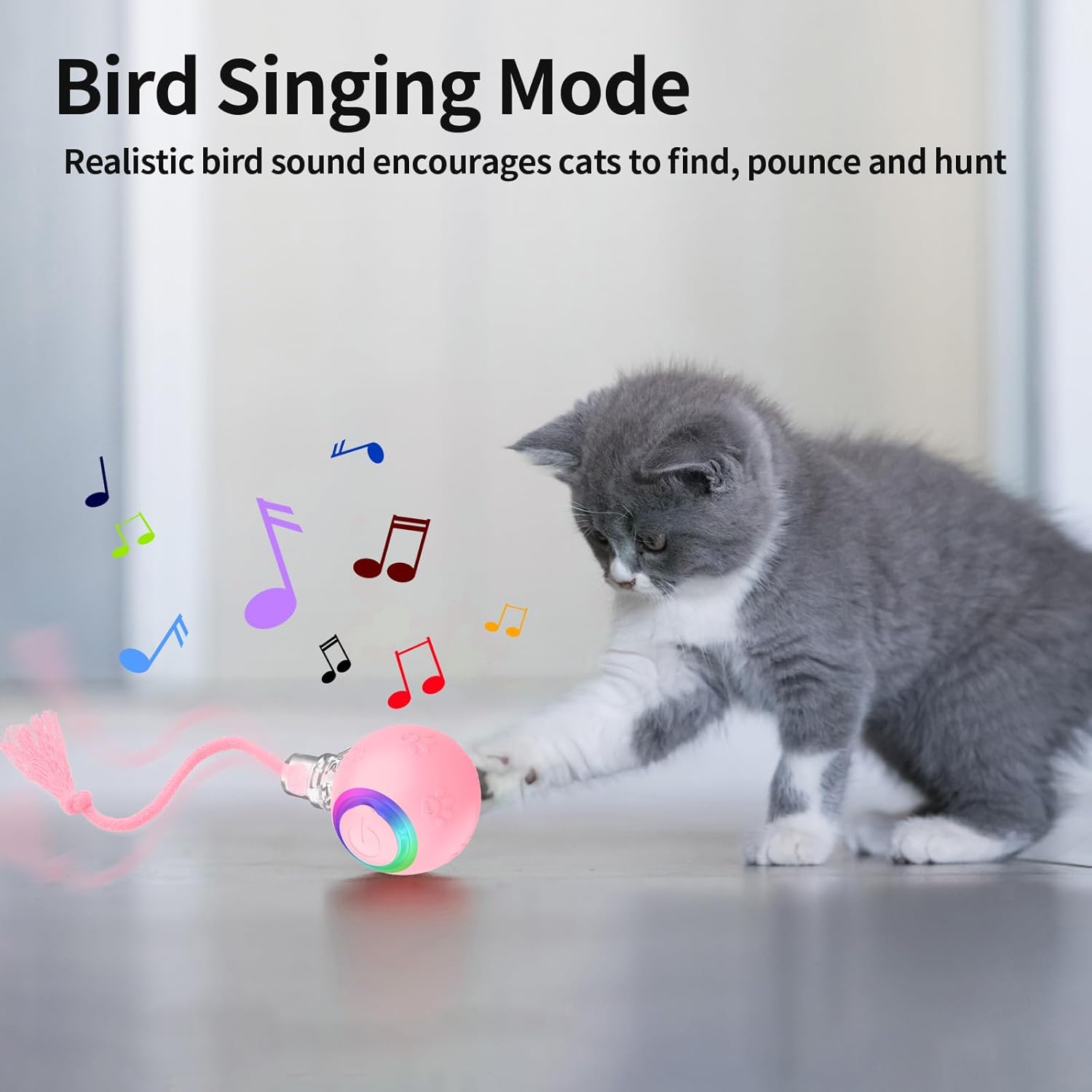 - Chirping Cat Toys & Speedy Tail 2.0: The Speedy Tail 2.0 rotates with the cat ball running and changes different rotational shapes, stimulating your cat to chase its hunting instincts. Realistic birdsong can attract cats interested in this game. Please wash off the fur stuck to its gears once in a while.