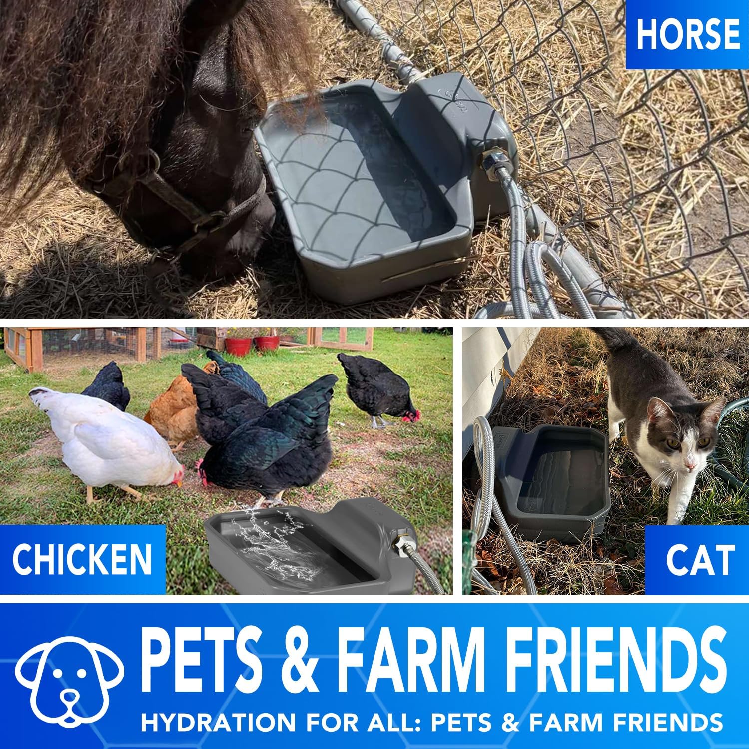 - Large Capacity 1 Gallon: With a 1-gallon large capacity automatic water dispenser is a game-changer for dogs, ducks, geese, ponies, and more. Heading out? No worries! It’s the perfect solution for worry-free hydration during your busy days or trips away from home.