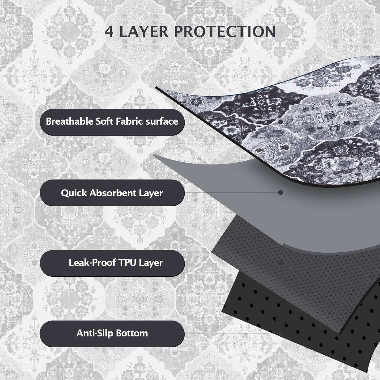 • 【Superior Absorbency】Washable dog pee pads made of multiple layers of waterproof and breathable material, leak-proof. Ensure your floors, seats and beds stay dry all night long.It’s also pet-friendly pads, using soft material to provide comfort for your puppy. Protects the floor and allows pets to lie down more comfortably.